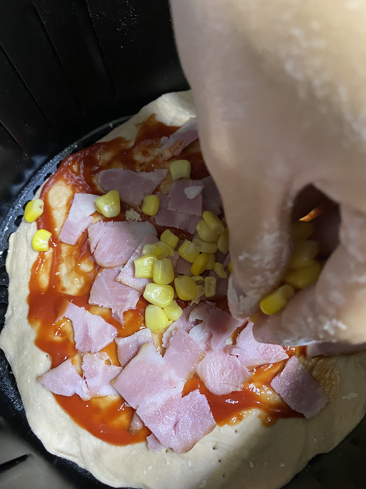 밀가루, 와인, 케첩, 콘, 베이컨, 치즈, 파프리카
