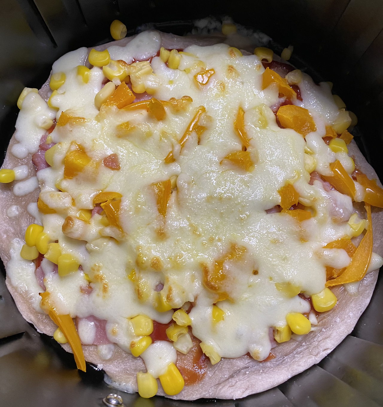 200도에서 3분을 추가로 가열하자 짜잔 이렇게 고소한 피자가 완성되었습니다.