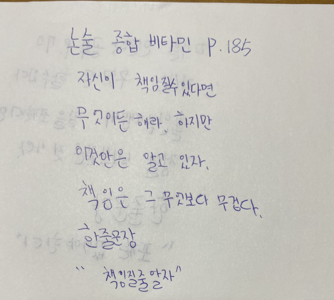 3. 논술 종합 비타민 185p를 읽고 중학생 아이의 생각