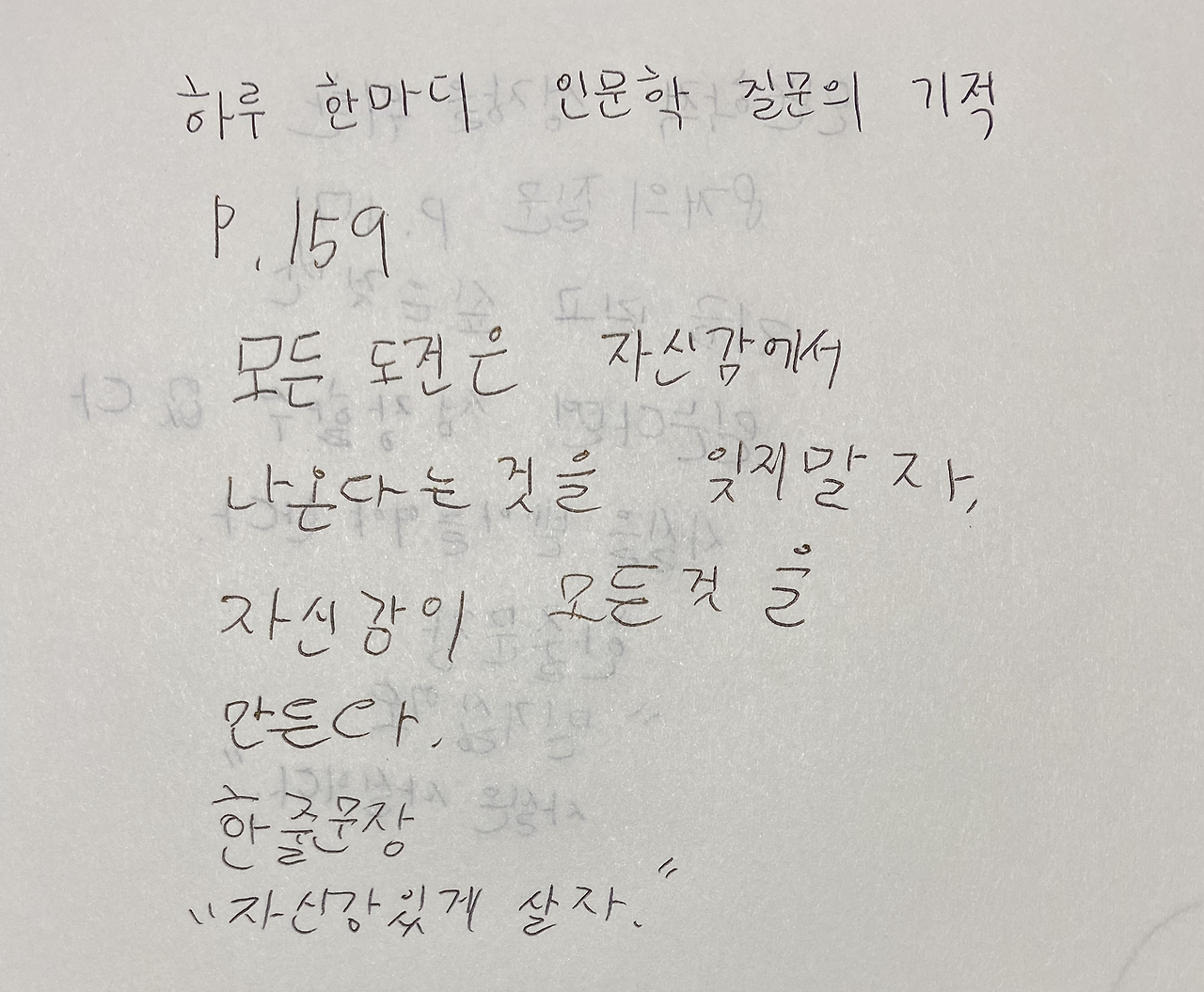 2. 하루 한마디 인문학 질문의 기적 159p를 읽고