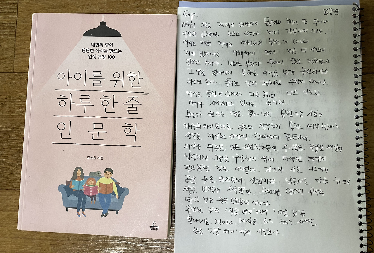 인문학 다이어리 대학생. 중2 아이의 생각