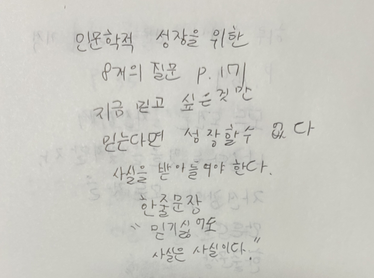 3. 인문학적 성장을 위한 8개의 질문 171p를 읽고