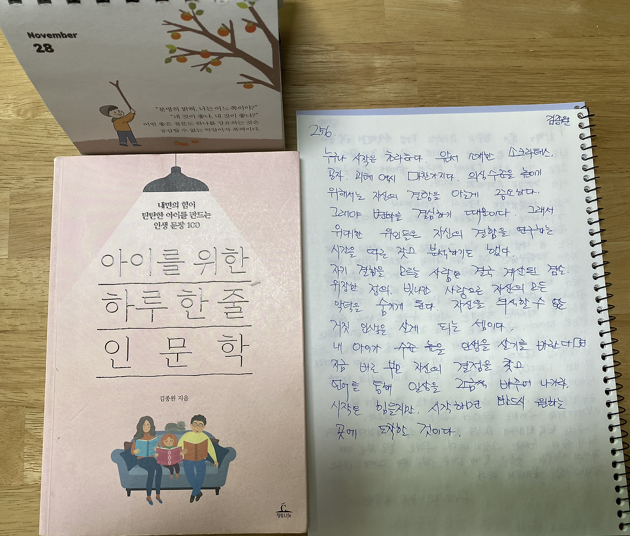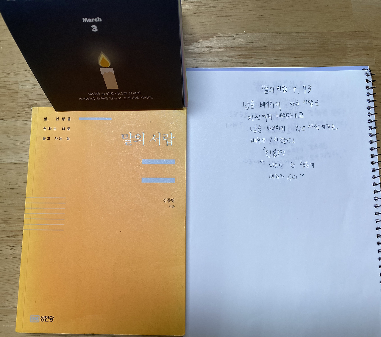 2. 말의 서랍 73p를 읽고 중학생 아이의 필사