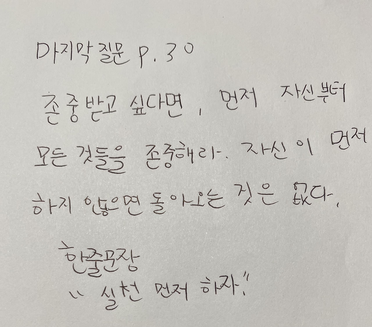 2. 마지막 질문 30p를 읽고 중2 아이의 생각