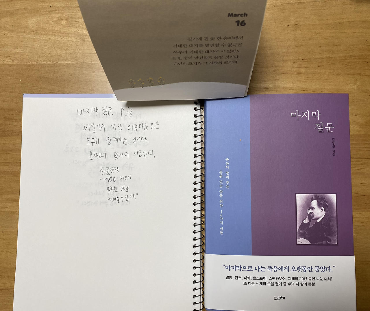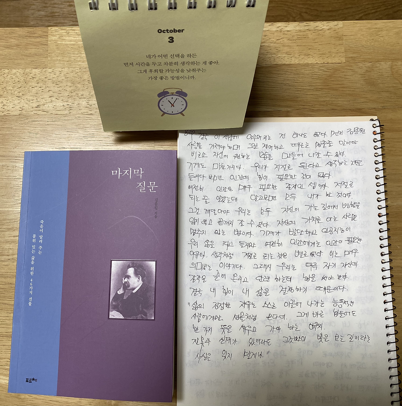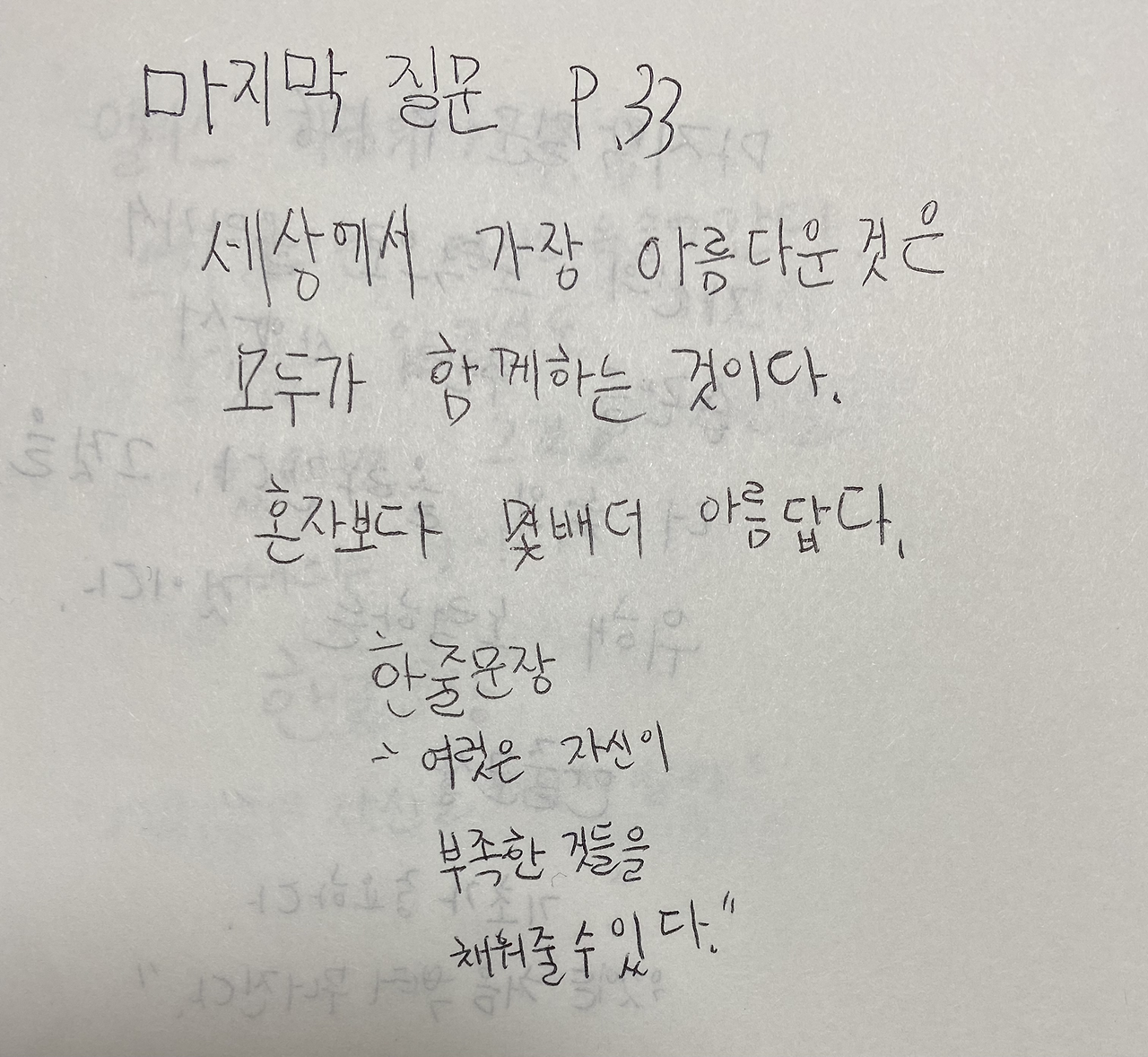 2. 마지막 질문 33p를 읽고 중2 아이의 필사