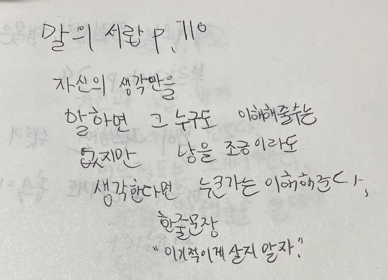3. 말의 서랍 110p를 읽고 중학생 아이의 생각