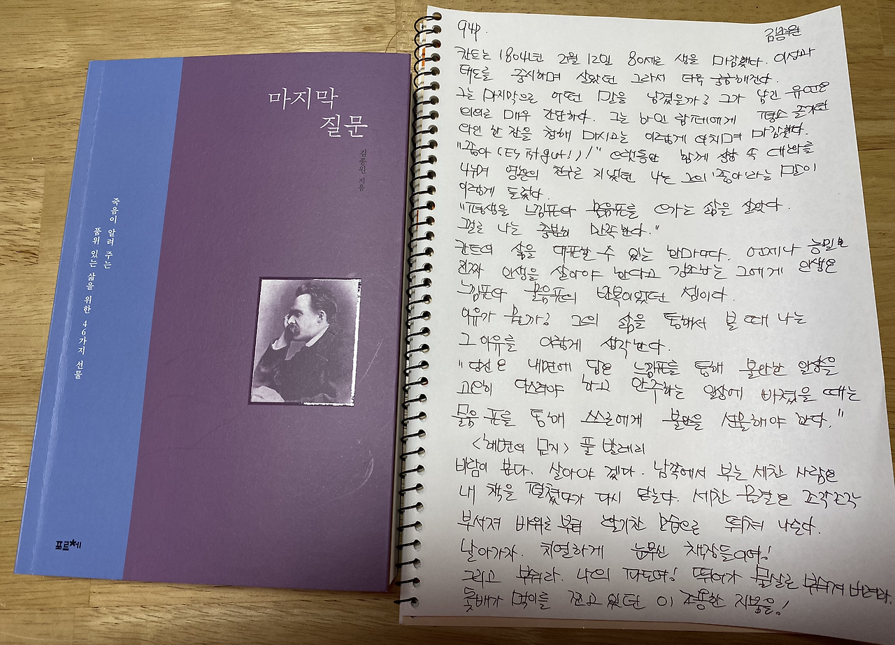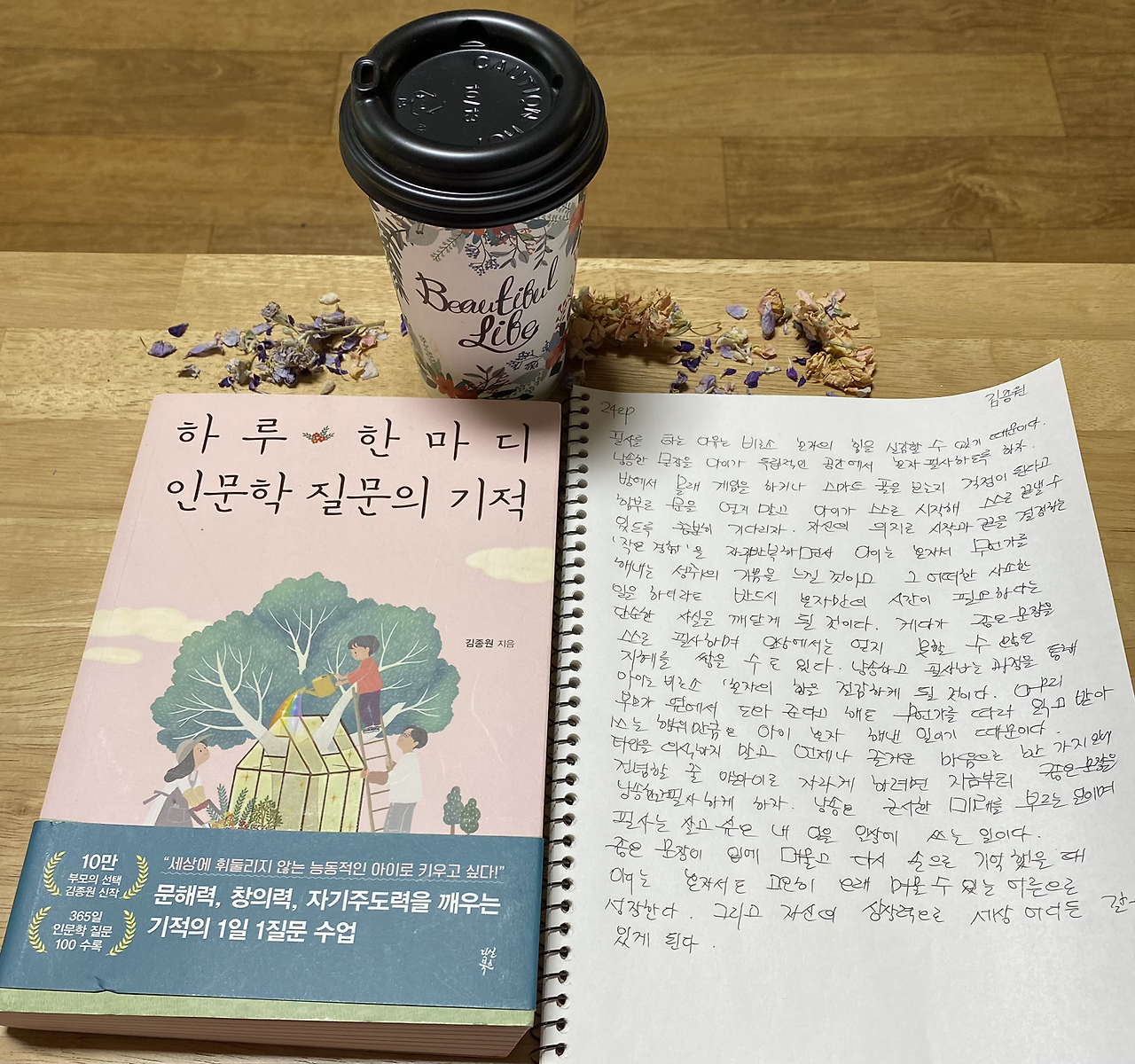 아이를 응원하는 일과 부모가 성장한다는 것이 말로만 해서 되는 게 아니듯 이처럼 매일 대가의 글과 마음을 내게로 가져와 문신처럼 새기는 치열한 배움을 통해 새롭게 태어나는 공부하는 길이라는 것이 늘 간직하는 오늘의 영성이며 영혼이 정화되는 맑은 내면의 소리이며 좋은 생각을 찾는 확신의 힘이다.