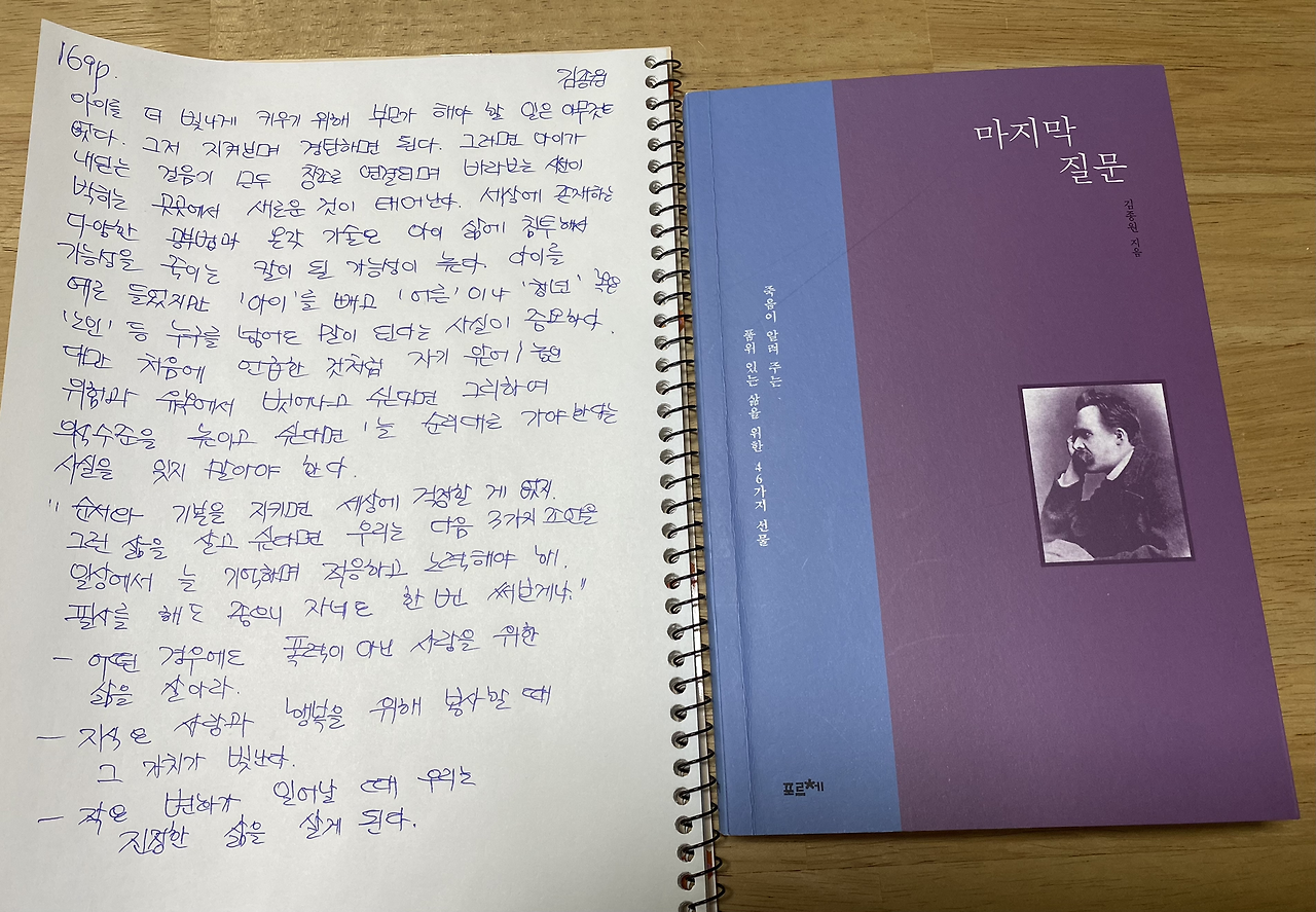 2. 마지막 질문 57p를 읽고 중2 아이의 생각