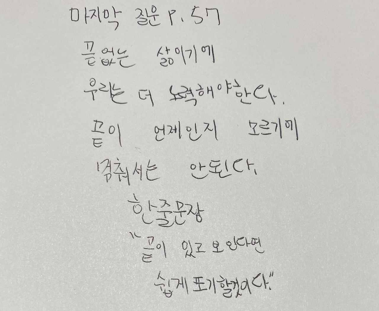 끝없는 삶이기에 우리는 더 노력해야 한다.