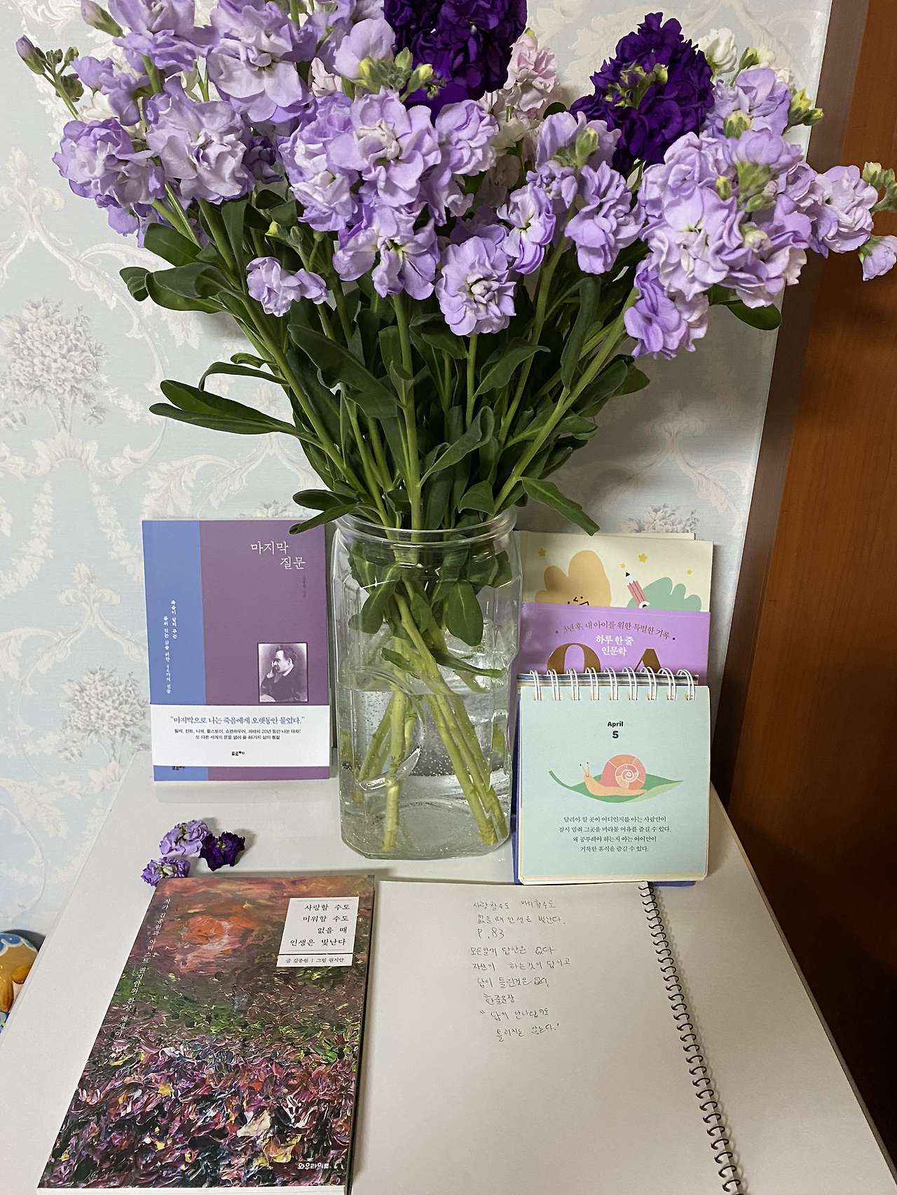 겨울의 꽃 ‘스토크’ 의 향기는 화사하며 풍족한 자신의 향기를 지닌 자연과 신이내린 선물 같다. 아침에 일어나 방 문을 열고 걸어 나올 때 마주치는 향기는 그야말로 그윽한 식물이 가진 향기라고 할 수 있다. 추울 때 자신이 오래 견딜 수 있는 강인한 꽃이 낮 기온이 22도까지 오르는 일교차가 심한 날에도 이처럼 싱싱하게 피어나는 모습을 보면 이 꽃들처럼 아름답게 살고 싶다는 내 생명의 온도를 만나는 것 같아 꽃을 보기를 즐긴다. 날이 점점 따스해지거든 이제 이 꽃이 어디론가 사라질까 나는 이 계절 안으로 내가 이 꽃을 초대했고 진한 사랑을 나누듯 말이 없이 서로를 보고 또 바라본다.