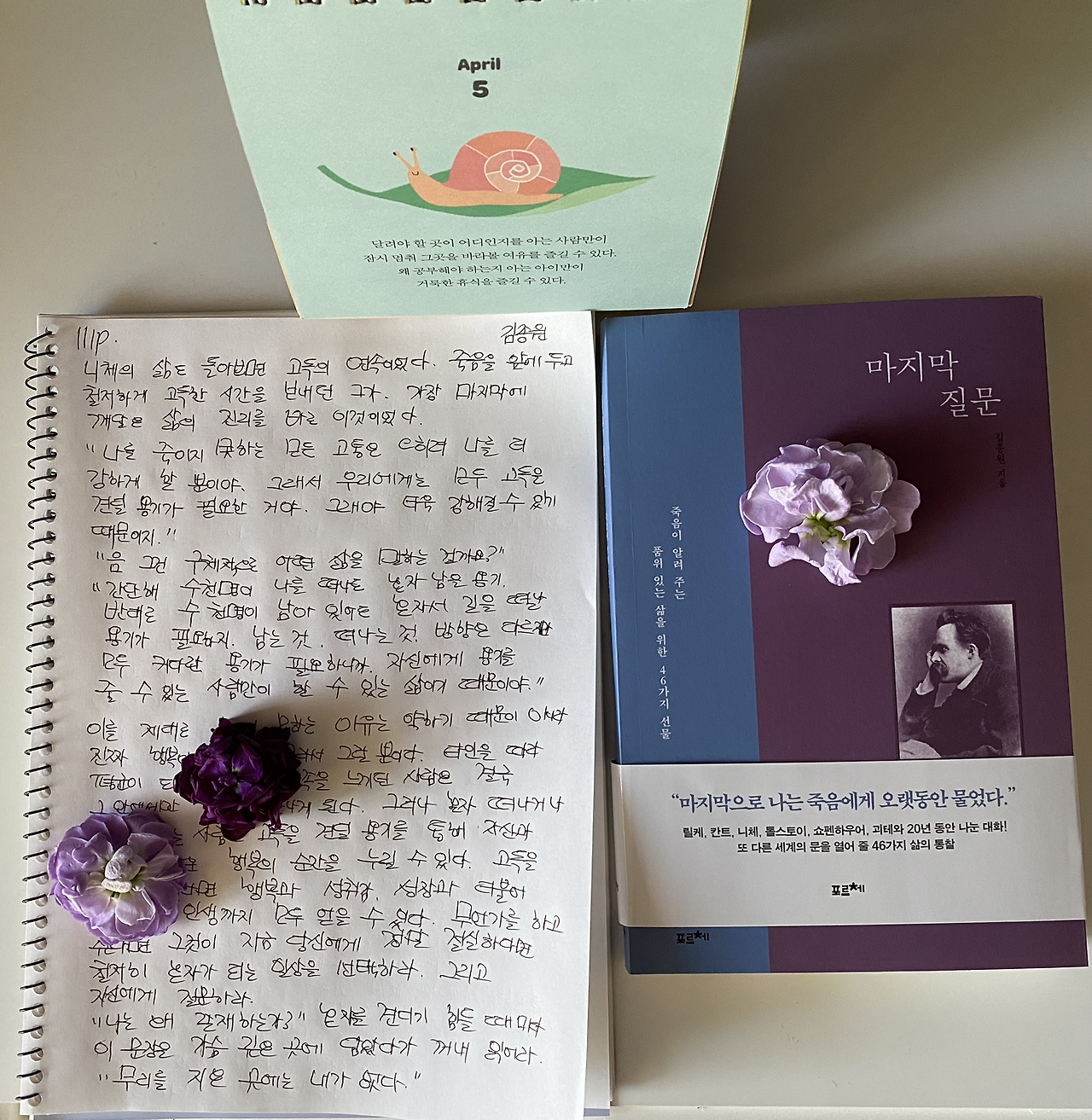 오늘은 온라인 서점 ‘예스 24 채널’에서 ‘마지막 질문’ 리뷰 글을 집중해서 거의 완성했는데 순간 터치가 작동하며 소중한 글이 훅 보이지 않은 공기 사이로 완전히 사라져 갔다. 언제나 그렇듯 그 마음 그 순간을 다시 만들면 되는데 ‘아, 이 아까운 뜨거운 몰입과 집중의 마음이 영 식히질 않네.’ 다시 하면 되는 일 그런데 진짜 시간과 순간과 영감들이 영 가시질 않는다.