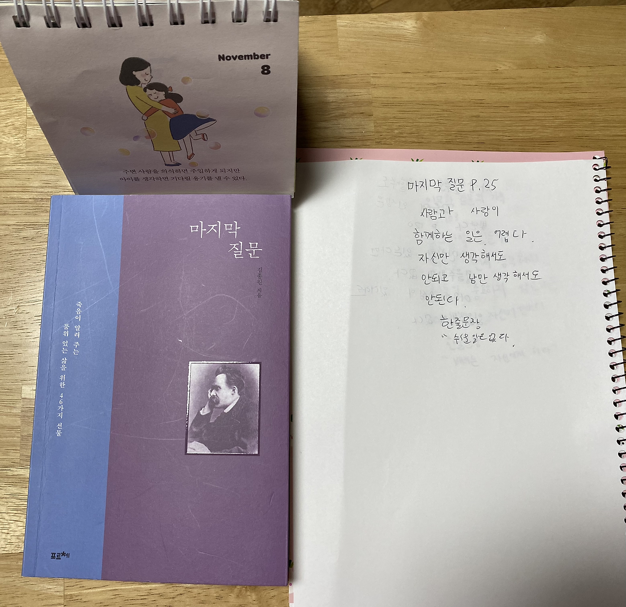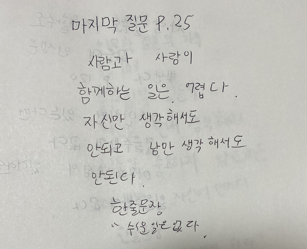2. 마지막 질문 25p를 읽고 중2 아이의 필사