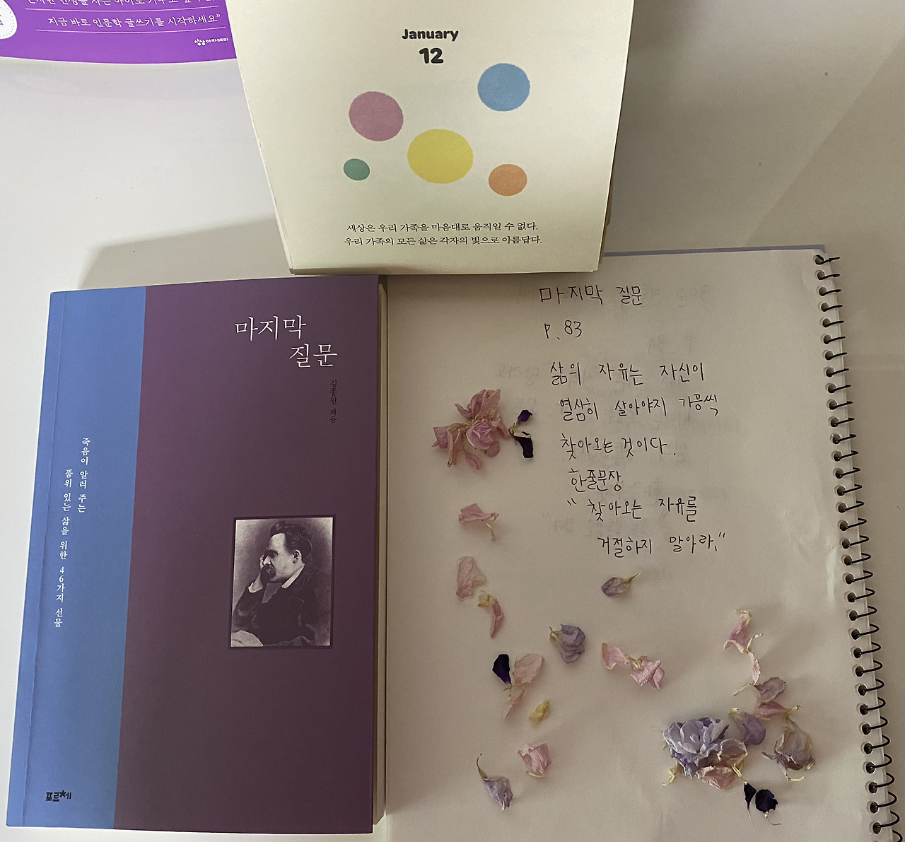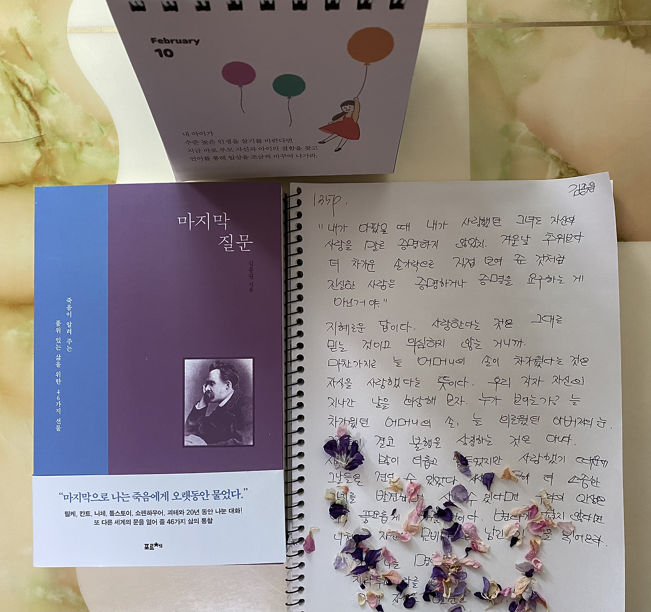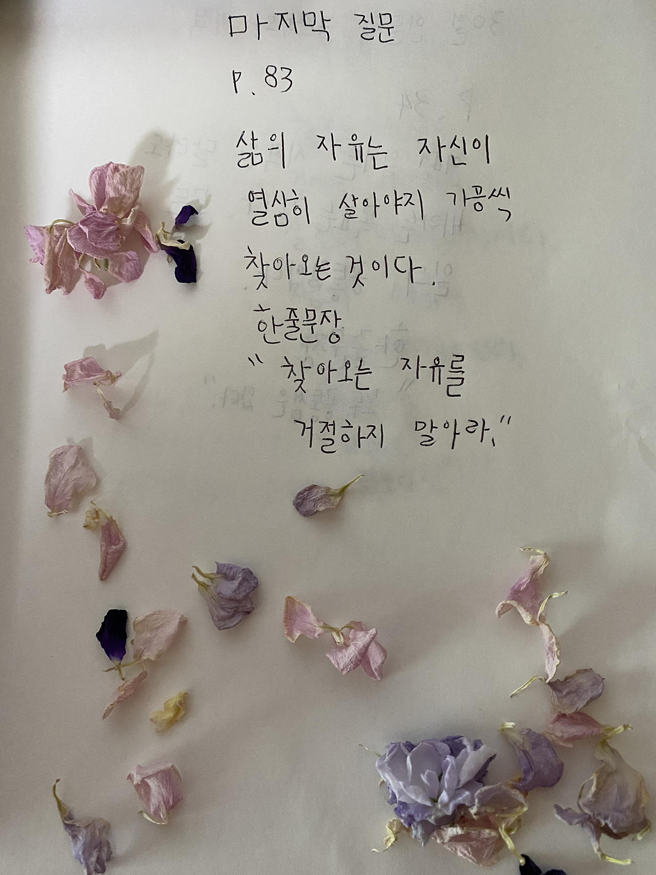 3. 마지막 질문 83p를 읽고 중학생 아이의 필사