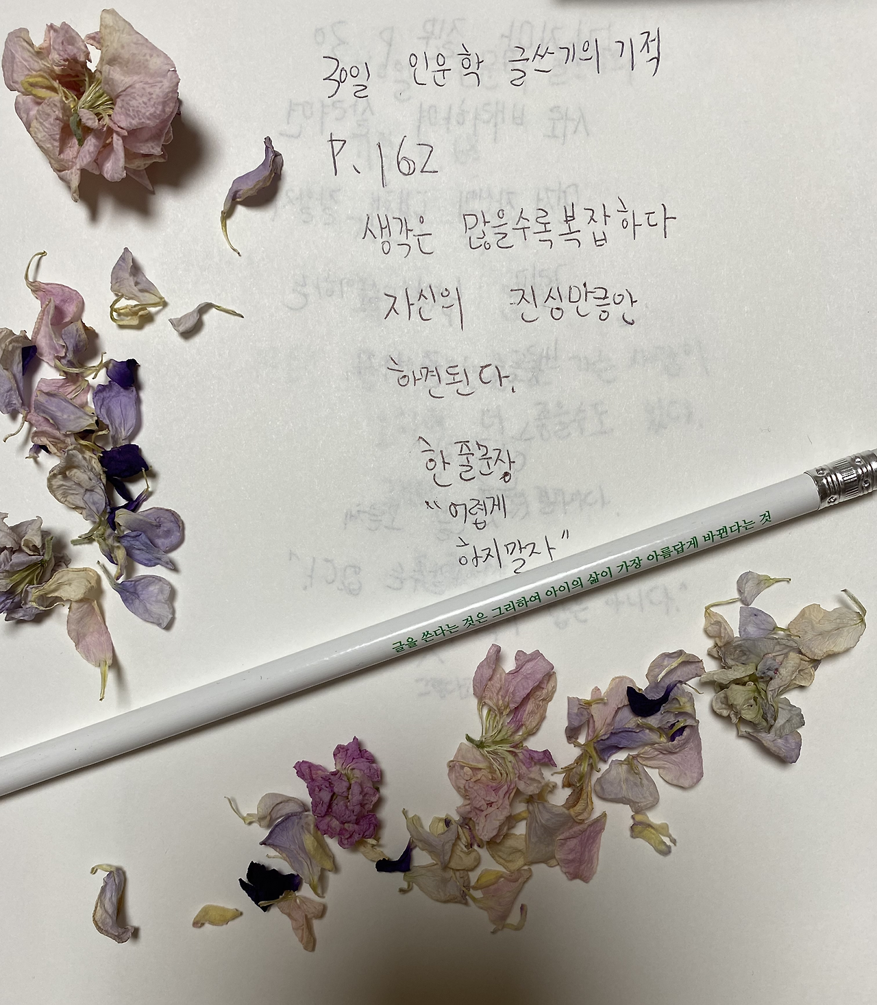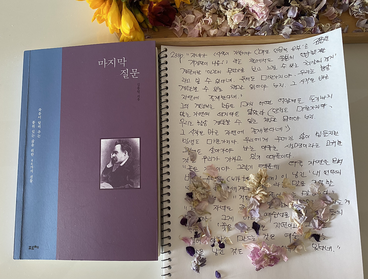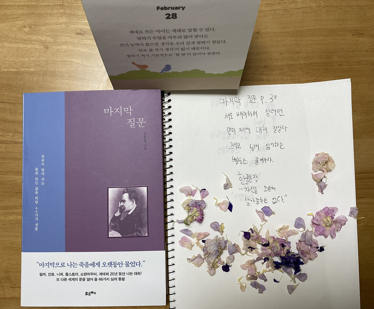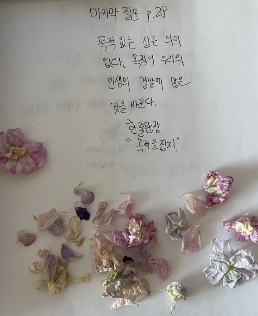 8. 마지막 질문 28p를 읽고 중학생 아이의 필사