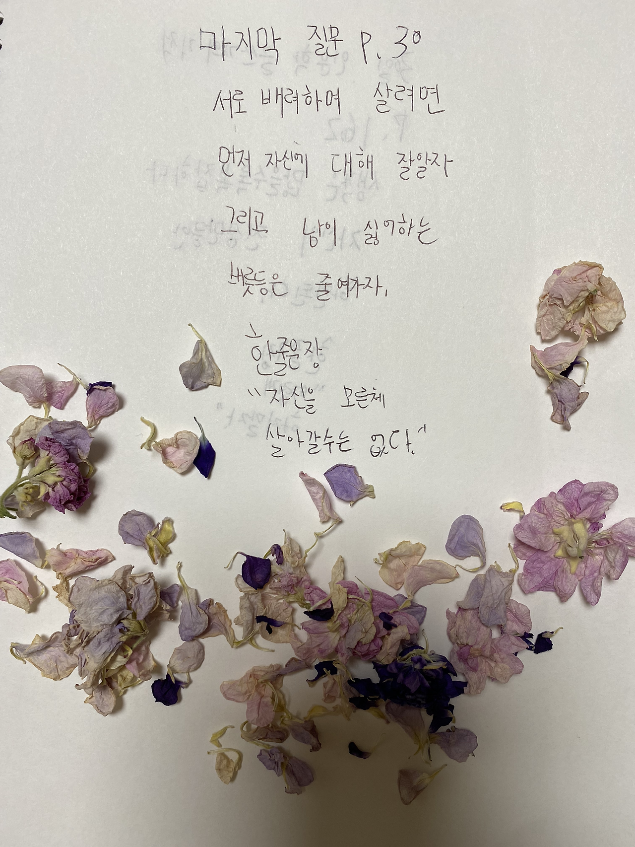 3. 마지막 질문 30p를 읽고 중학생 아이의 필사