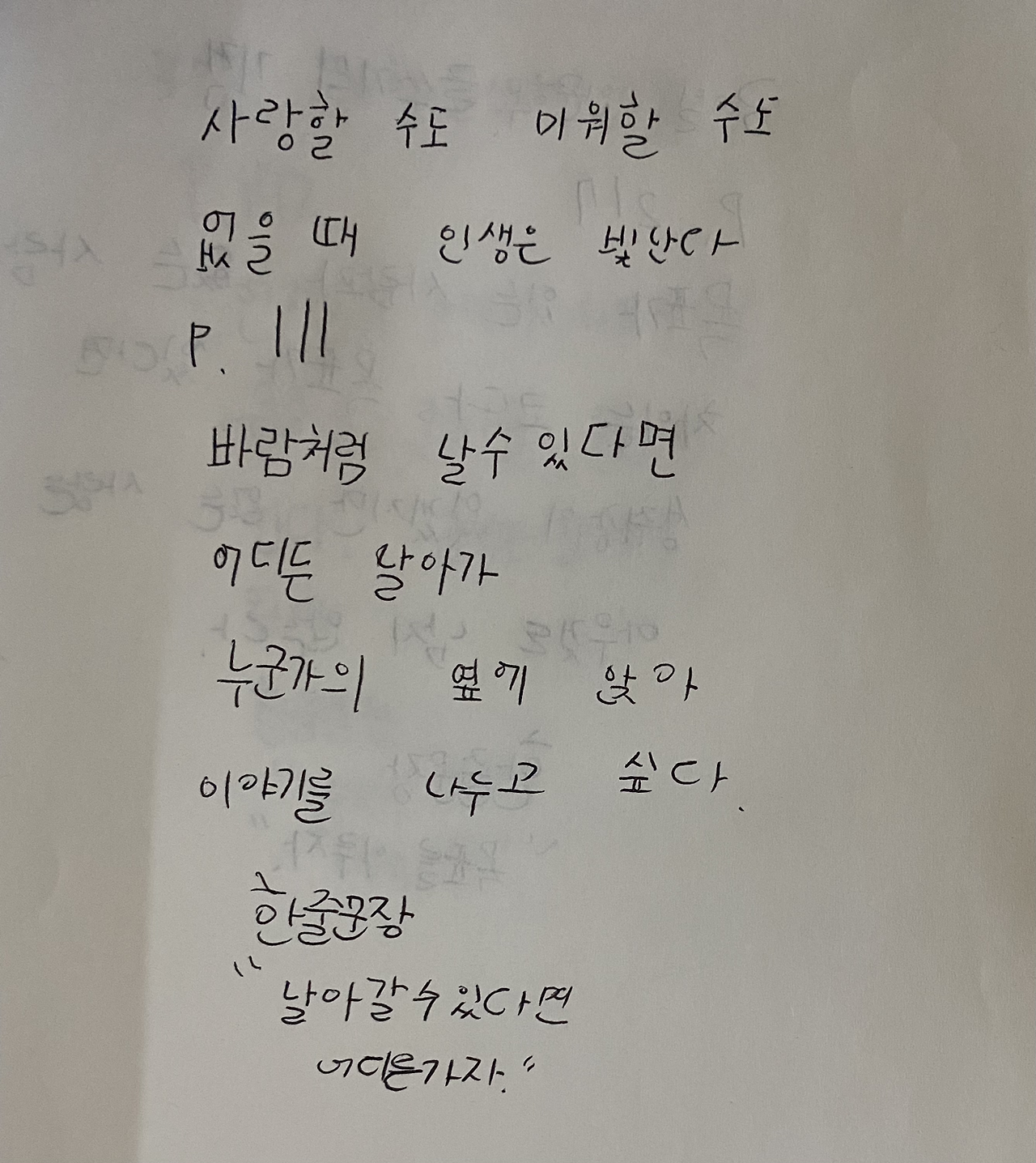 되는 이 평범한 삶의 길이 있어 이 좁은 공간이 좁지 않고 할 수 있는 일상의 모든 것을 발견하는 과정과 증거가 되는 거니까.