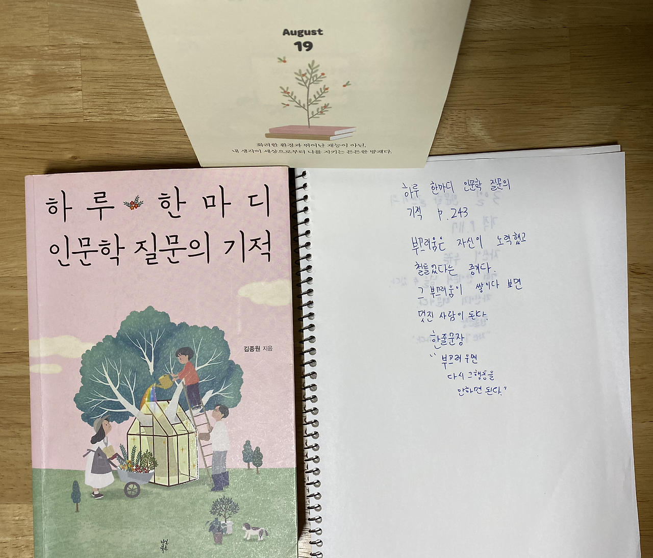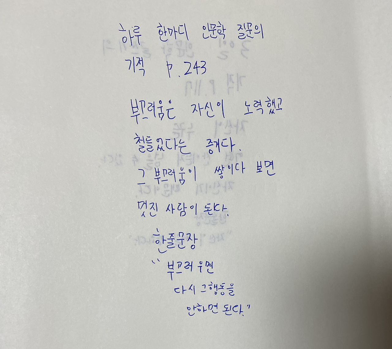 3. 하루 한마디 인문학 질문의 기적 243p를 읽고