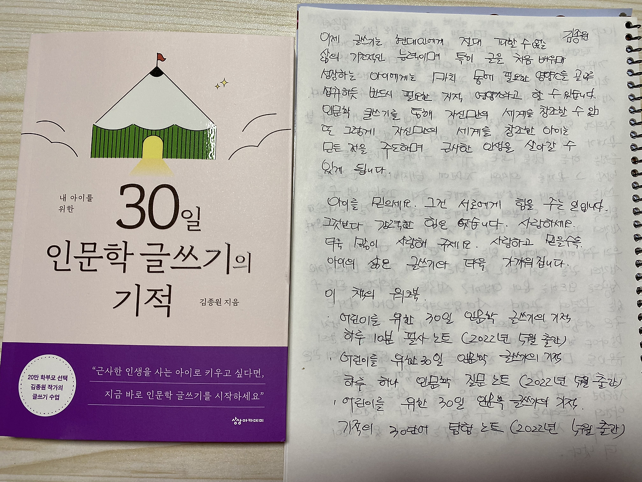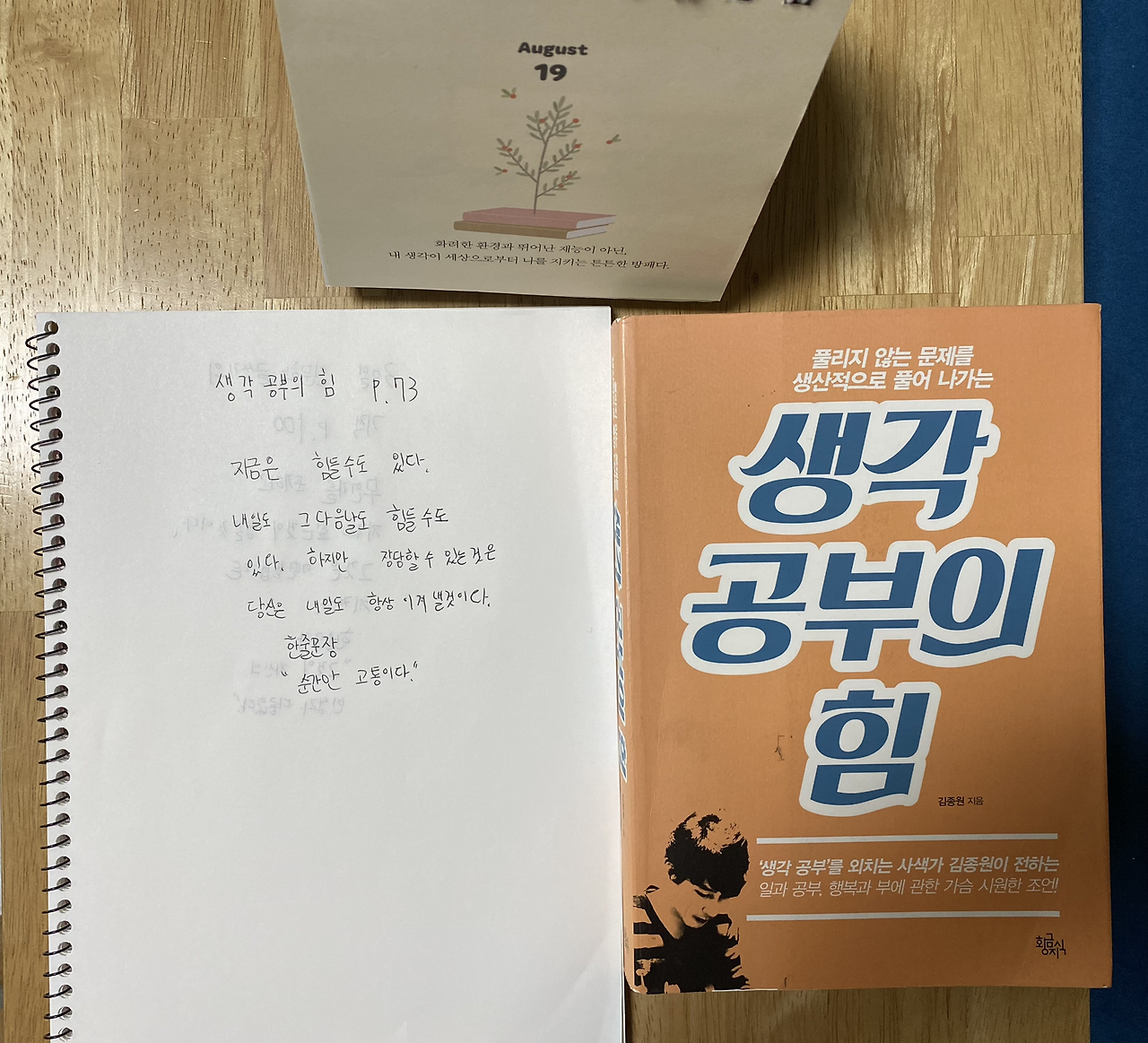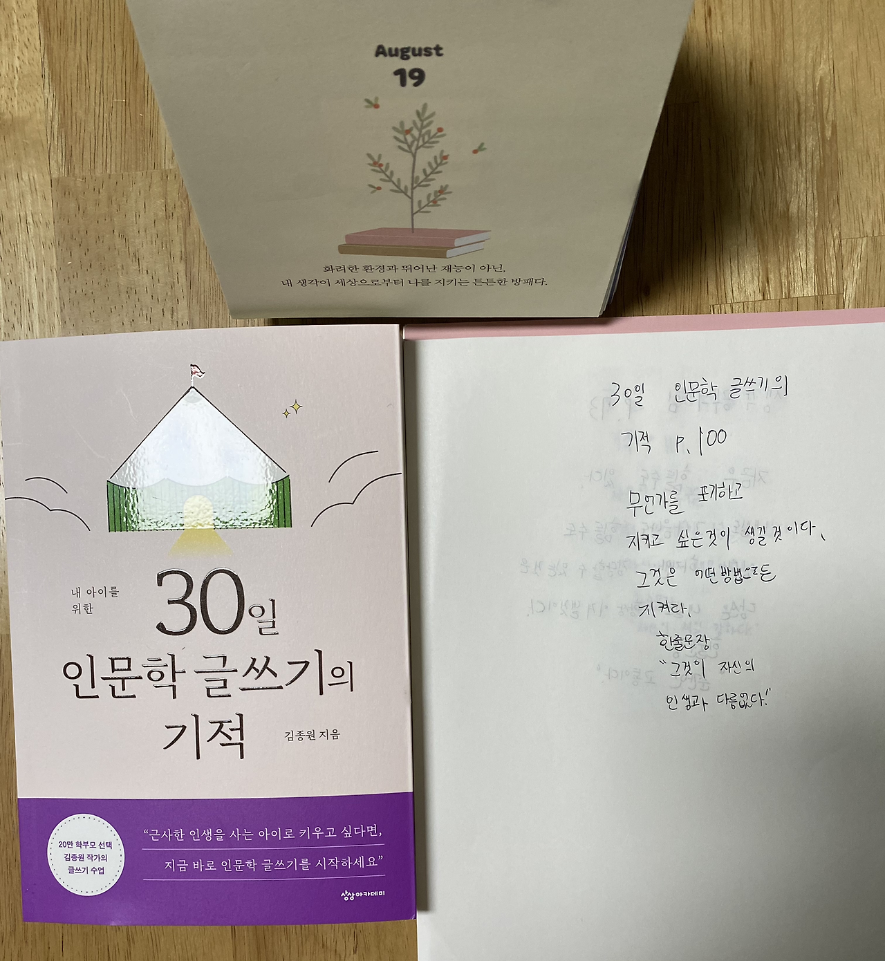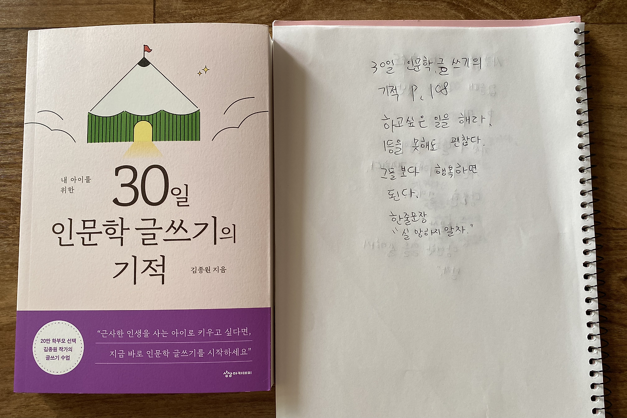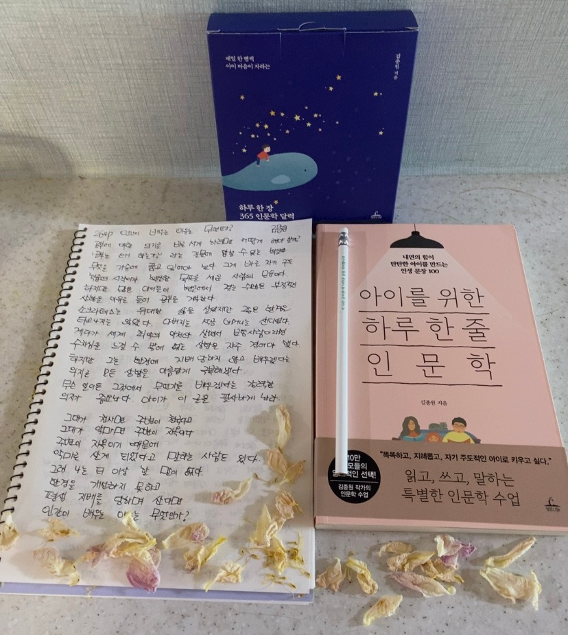 중학생 아이는 체육시간에도 늘 최선을 다해 즐기는 걸 좋아한다. 나는 매일 아침 아이가 밤새 해놓은 필사 노트를 펼쳐 사진에 담아두고 퇴근 후 차분하게 아이의 글을 이곳에서 마주하고 대학생 큰 아이는 자신의 용이한 시간에 인문학 다이어리 글을 쓰고 늦은 밤 모두 모일 때 두 아이는 모든 것을 멈추고 모여 인문학 일력 글을 선택하고 낭송을 한다.