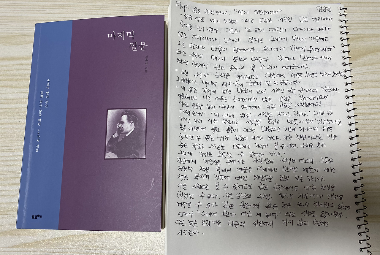 이렇듯 인간은 늘 생각하고 배우기 위한 삶을 선택하며 살아야 한다. 오늘 저지른 실수나 잘못을 반성하며 자신을 되돌아보는 일이 무엇보다 소중하기 때문이다. 그럴 수 있는 변함없는 가치의 시간을 밖이 아닌 가정에서 함께 실천해가는 지적인 도구이자 내면을 단련하는 무기가 바로 하루 10분 아이들과 함께 책과 글과 함께 떠나는 필사와 글쓰기 낭독을 하는 감성놀이 이자 지혜의 여행을 시작하는 마음과 생각의 문을 여는 일이다.