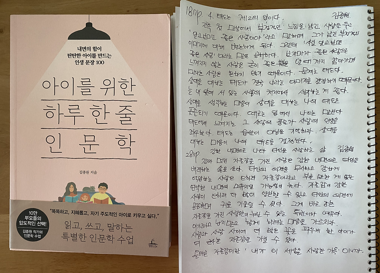 좋은 글을 필사하면 머리에 남는다고 아이는 생각한다.