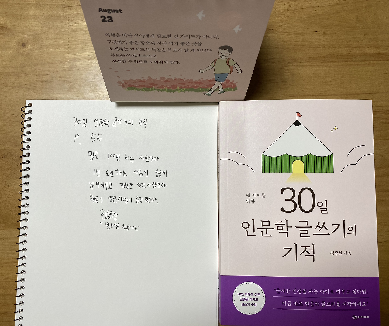 1. 30일 인문학 글쓰기의 기적 55p를 읽고