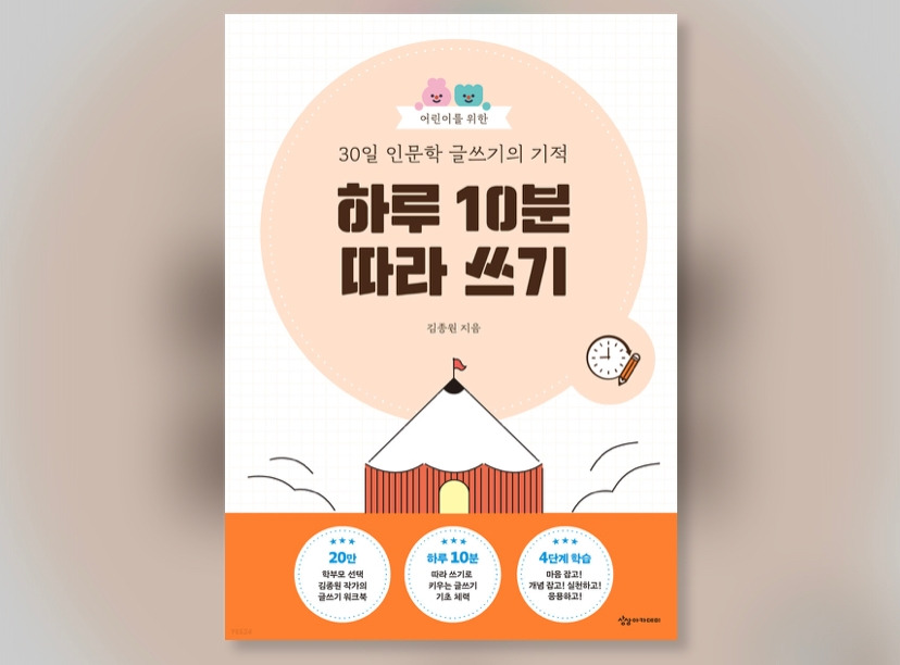이제 인문학 글쓰기 워크 북으로 사랑하는 아이에게 특별한 시간을 엄마의 가장 좋은 마음으로 선물하면 좋을 것 같습니다. 어린이를 위한 30일 인문학 글쓰기의 기적 중에서 1. “하루 10분 따라 쓰기”인데요. 마음잡고, 개념 잡고, 실천하고 응용하기 의 과정을 통해 아이는 조금씩 내면의 힘을 기르게 되는 법을 김종원 작가님만이 이끌어 주시는 길을 따라 그대로 걸을 수 있을 겁니다.