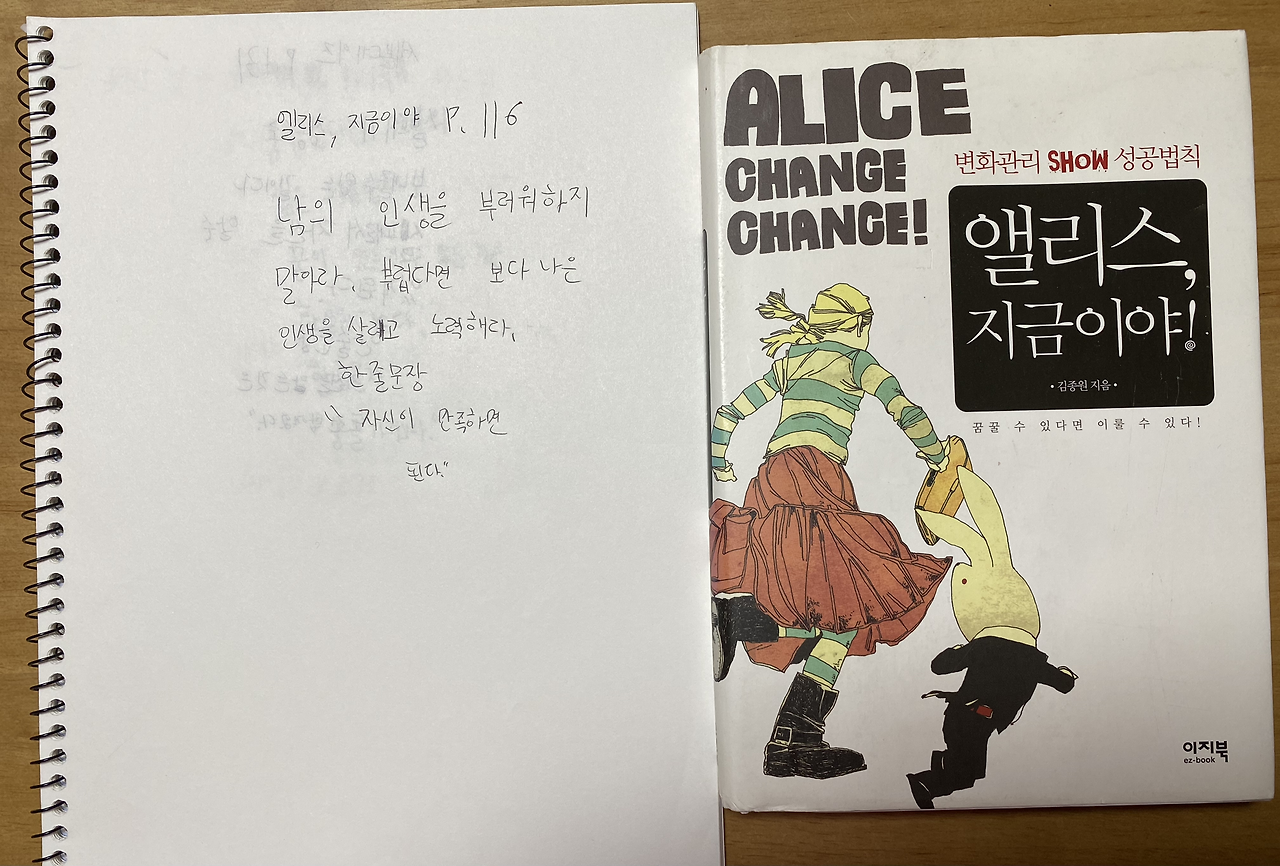3. 앨리스 지금이야 116p를 읽고 중학생 필사