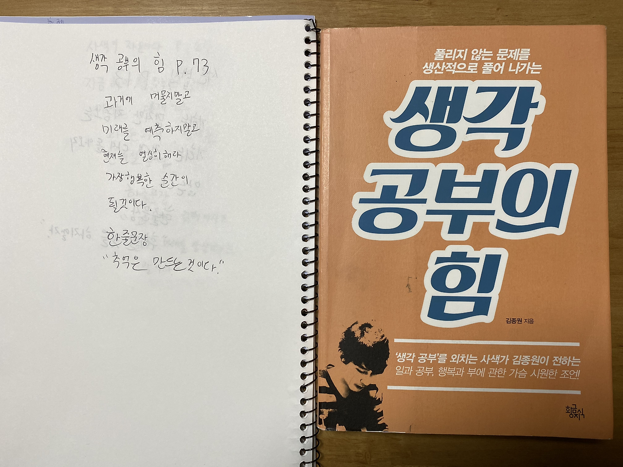 3 생각 공부의 힘 73p를 읽고 중2 아이의 필사