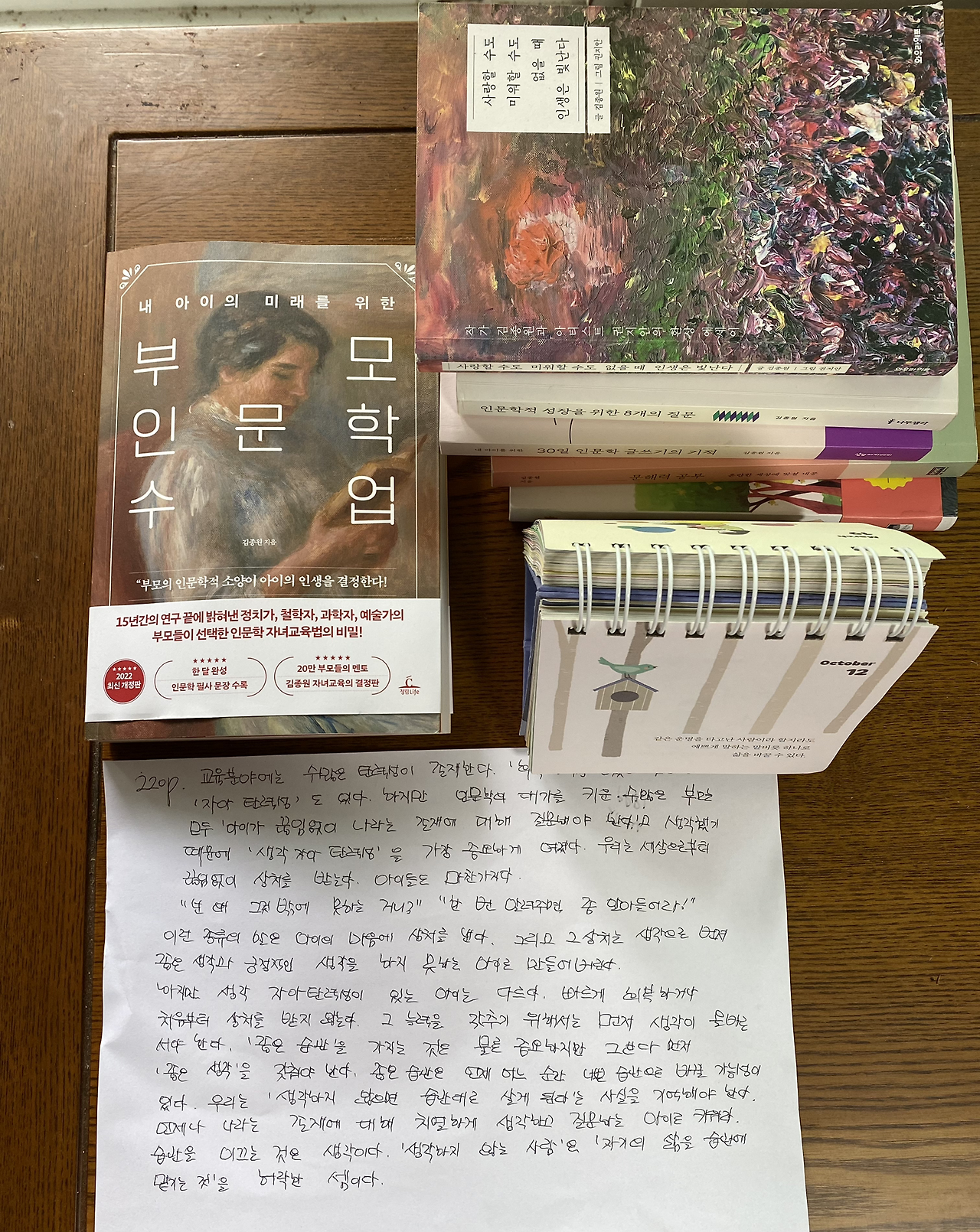 시간이 흐르고 큰 아이의 날들이 이제는 많이 가라앉고 여유로운 일상의 모습들을 보며 내가 나로서 살아가는 모습에 충실한 시간이 있기에 나로부터의 변화가 아이에게도 가장 먼저 닿게 할 수 있는 지적인 질문의 시간을 만들 수 있는 인문학 수업이 주는 위대한 기적이 늘 우리곁에서 존재하므로 가능한 매일의 순간이다.