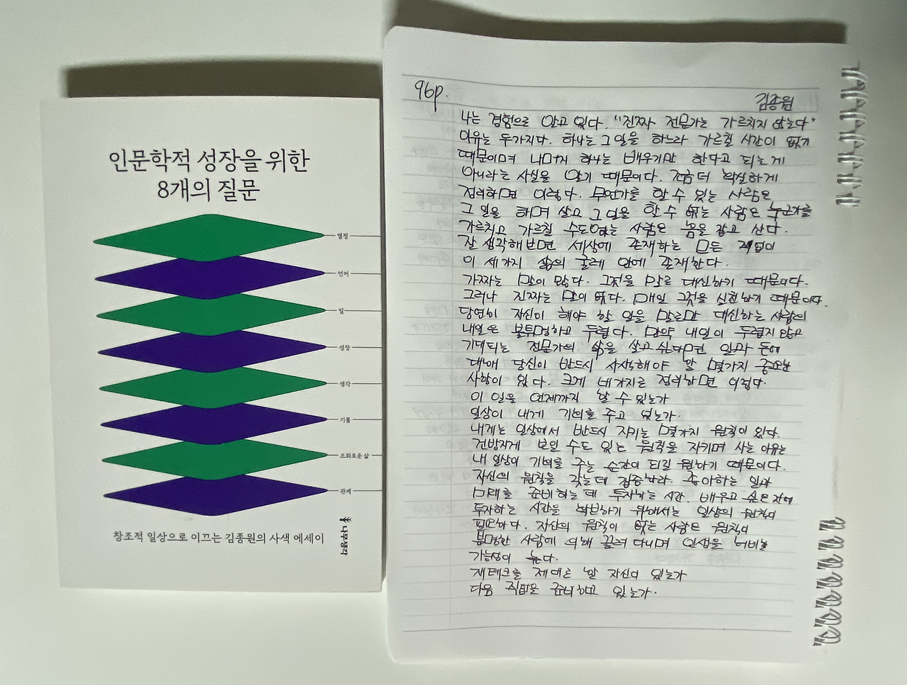 1. 부모 인문학 수업 개정판 (김종원 저) 엄마의 필사