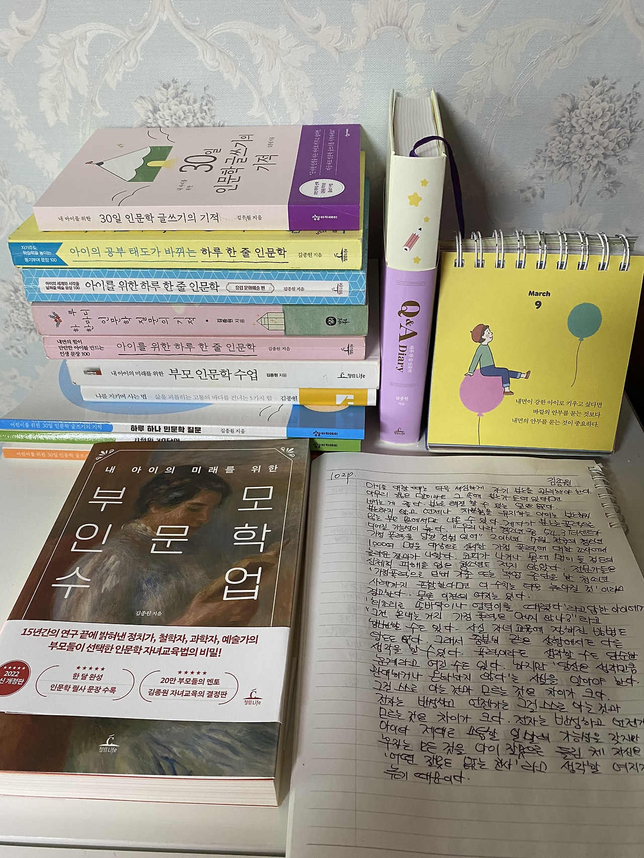중2 아이는 아름답도록 행복이라는 단어를 발견한다. 이는 이처럼 고운 글을 읽고 그 안에서 자신의 생각을 꽃피우는 일을 실천하는 순서대로 과정을 찾아가는 중이니까. 매일 밤 적막한 깊은 고독 속에서 아이는 어제처럼 책 안에서 무수히 펼쳐지는 자신의 우주라는 세계를 만나며 살고 있다.