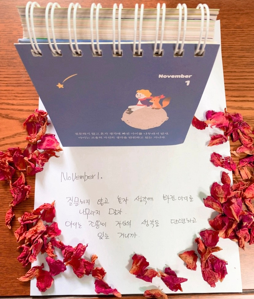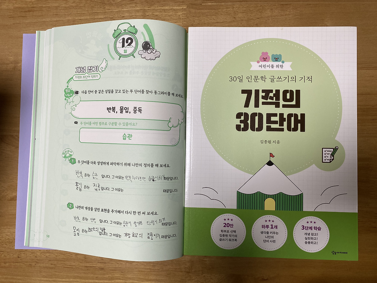 인문학 워크북 ‘기적의 30 단어’를 읽고 둘째 아이는 단어의 개념을 사색했다. 오늘의 단어는 반복, 몰입, 중독 그리고 습관이라는 단어로 구분해 갈 수 있도록 상상의 창이 그려진 곳에서 매일 아이는 자신의 생각을 함께 만날 수 있다. 반복 그리고 좋은 습관이 몰입으로 이어지며 성장하게 되는 꾸준함이 결국 최고조의 집중을 발휘하게 됨을 아이는 정의해 갈 수 있으니 좋은 생각과 마음이 이끄는 좋은 글과 책을 함께 하는 아이는 살아있는 자신의 시간으로 이동하며 늦은 밤 평온하게 자신만의 기차에 탑승했을 것이다.