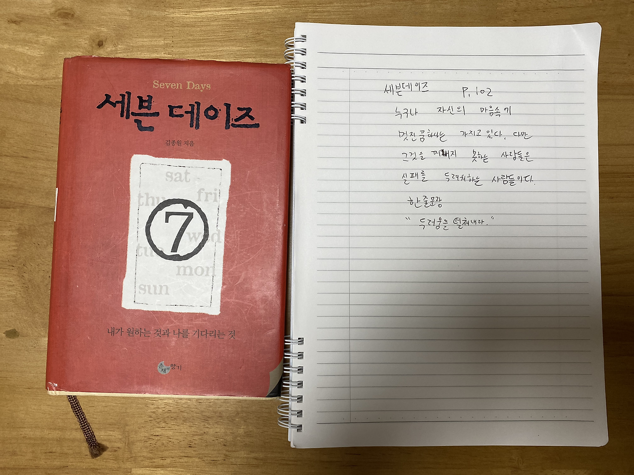 2. 세븐 데이즈 102p를 읽고 중2 아이의 생각