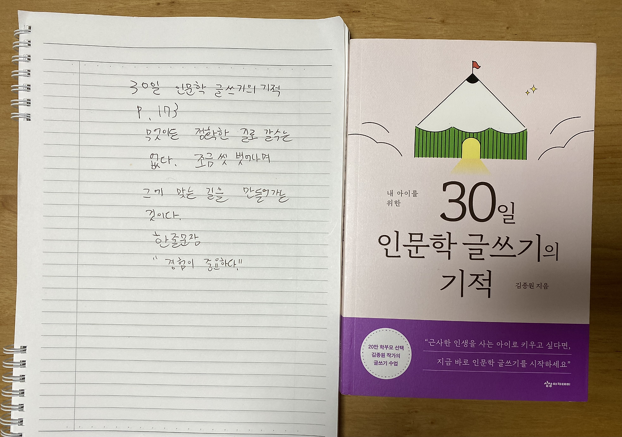 나는 아이에게서 한 줄 철학을 진하게 느껴본다. 그렇지 매일 그렇게 한다는 게 무엇보다 중요한 공부이며 핵심인 거지 아이는 기본에 충실할 수 있으니 부모는 그걸 볼 때 무엇이 걱정되질 않고 평온한 마음을 다해 아이를 바라볼 수 있다.아이 말에서 힘을 얻는다. 그렇게 매일 무엇을 생각하고 말하며 사는지 그 하나면 이미 충분하다.