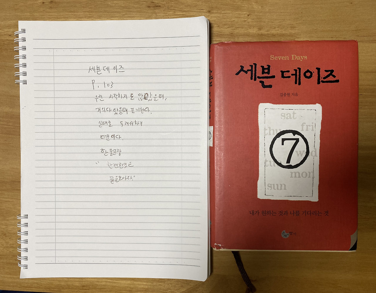 2. 세븐 데이즈 103p를 읽고 중2 아이의 생각