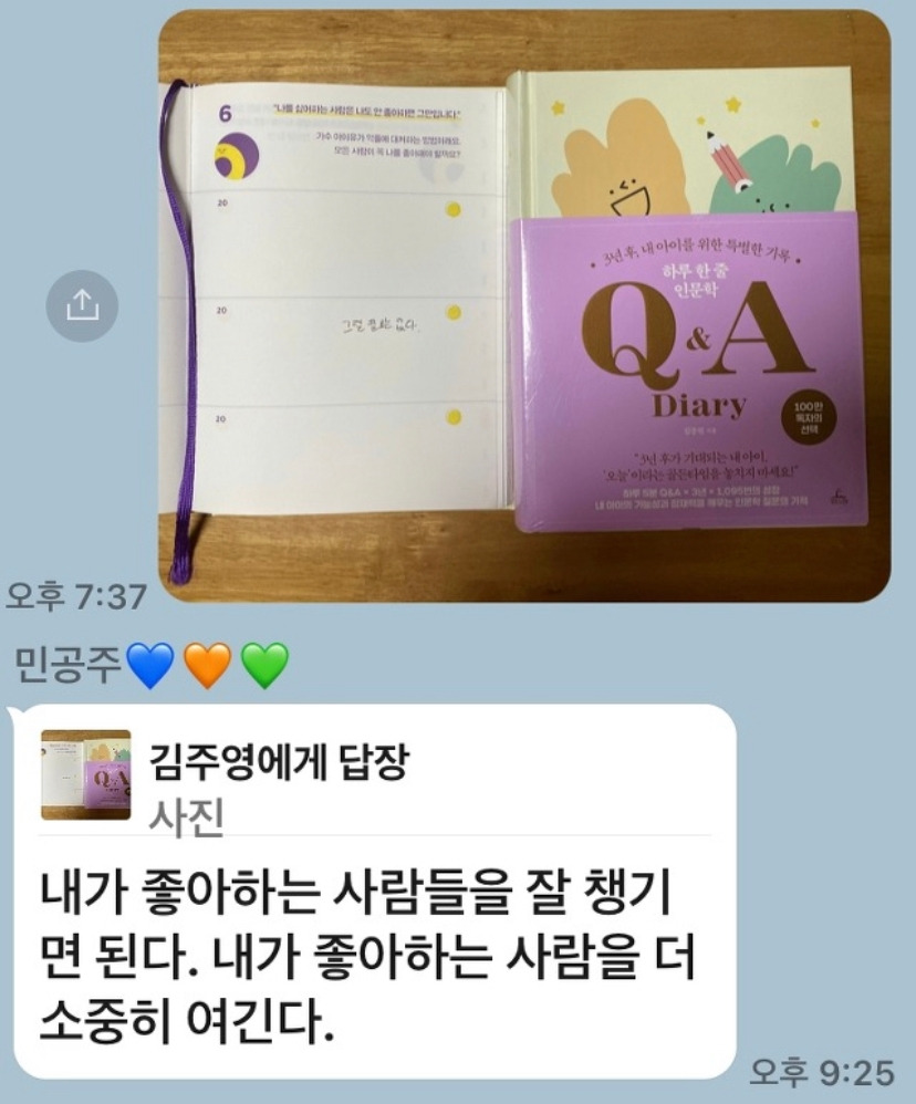 “엄마가 어제 제게 해주신 말씀요. 어떤 일에서 항상 네 마음이 먼저다. 제 마음이 편한 선택과 결정을 하라는 그 말씀대로 또 한 번의 일을 결정할 수 있었고 이전에 고민하던 감정들에서 제 마음이 훨씬 가벼워지는 순간을 오늘 만날 수 있었거든요.”라며 감정과 관계에서 자신의 의지를 발견하는 듯 한 모습이 간결해 보여 엄마도 행복했다.