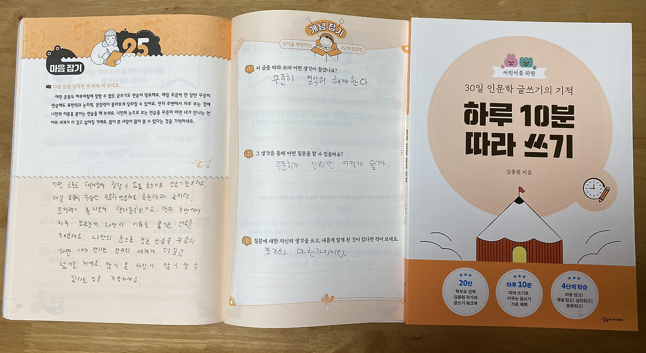 (김종원 저) 123p 를 읽고 중2 아이의 필사