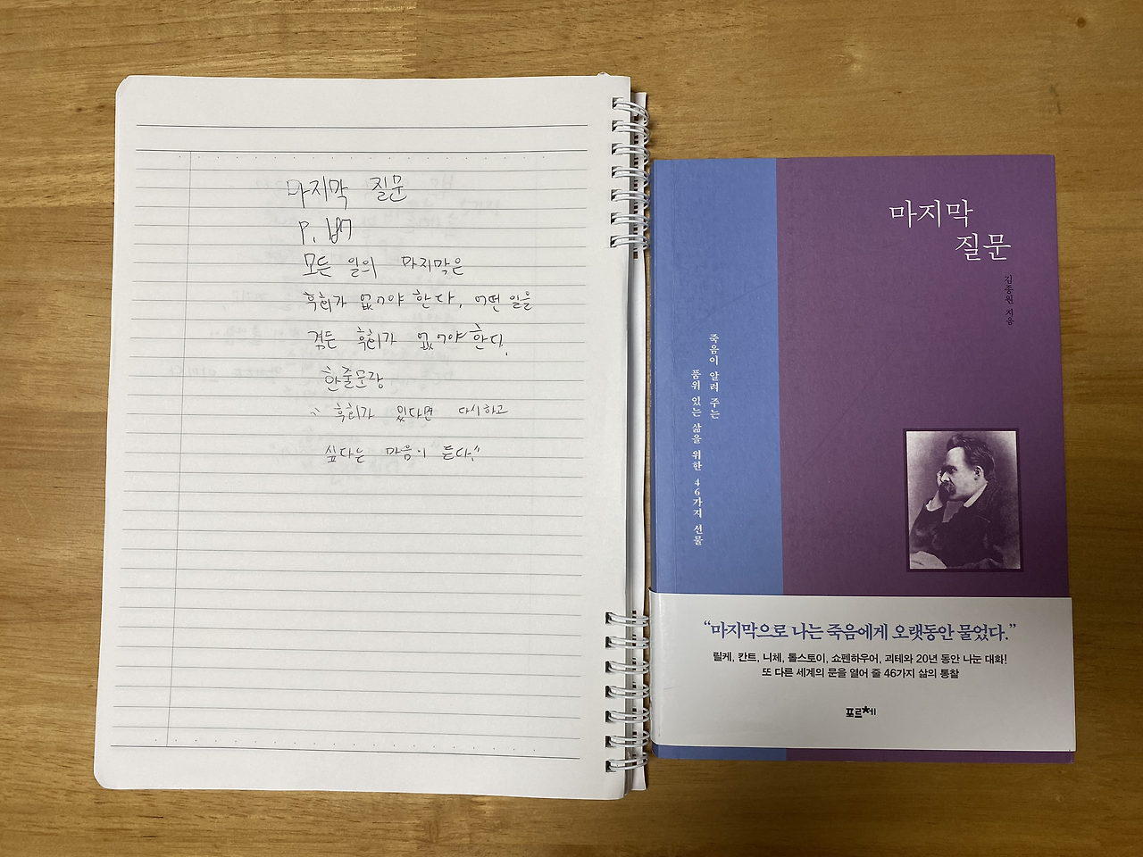 1. 마지막 질문 187p를 읽고 중2 아이의 생각