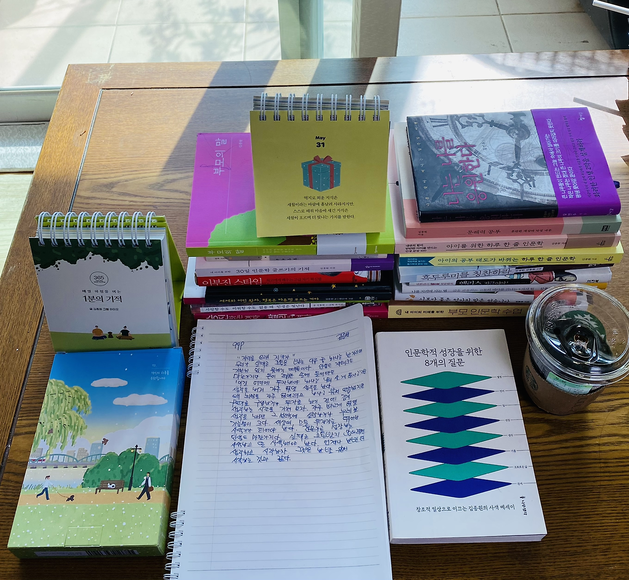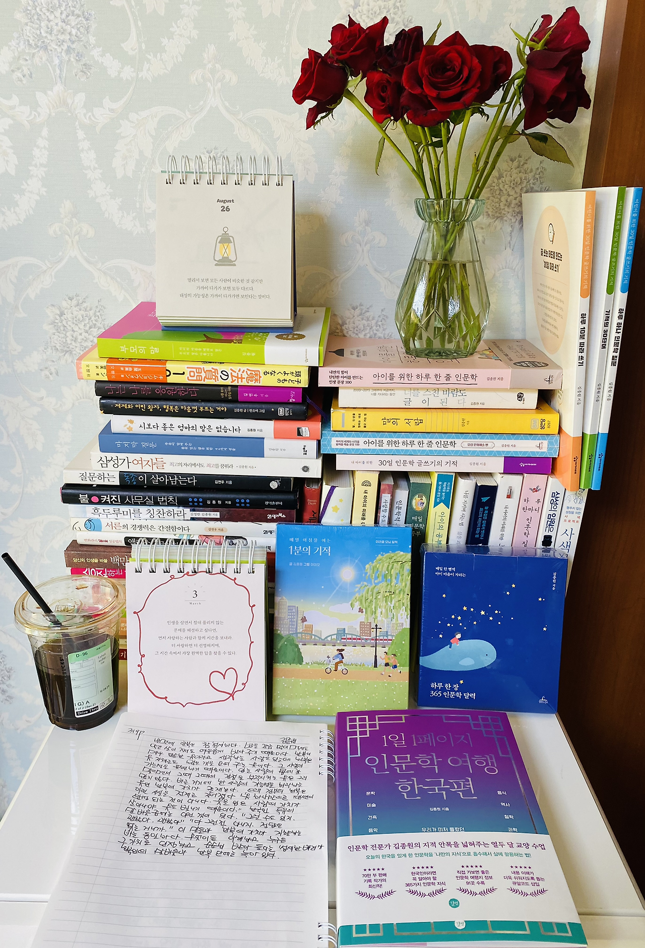 오늘의 필사 책은 두 권 씩이 두개가 나란히 보인다.엄마집에서 그리고 내 집에서 펼친 책이 왜 같았을까 그날 그날 한 권씩 고를 수 있는 나만의 독서법이 있어 매일 떠나는 필사 그리고 일상의 여행이 새롭다.