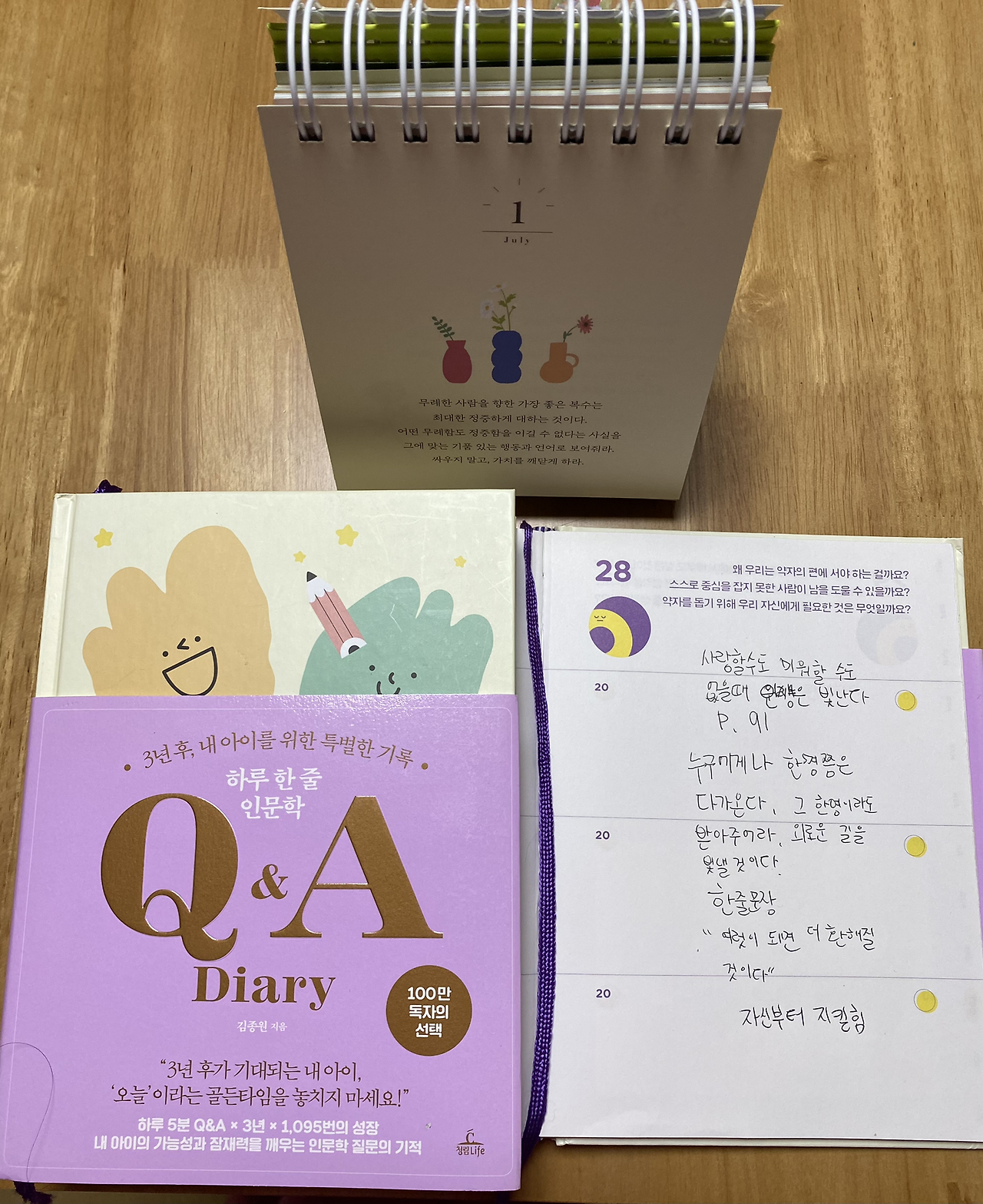 아이와 함께 하는 인문학 여행 아이들에게 좋은 핵을 건넬 수 있는 엄마의 마음에도 행복한 꽃이 피어난다. 조금 두꺼운 책이라는 것 그러나 이 안에 담긴 다양한 수준을 매일 조금씩 볼 수 있는 인생과 세상의 파노라마가 1일 1페이지 인문학적인 멋진 여행 속에 가득 실려 있으니까.