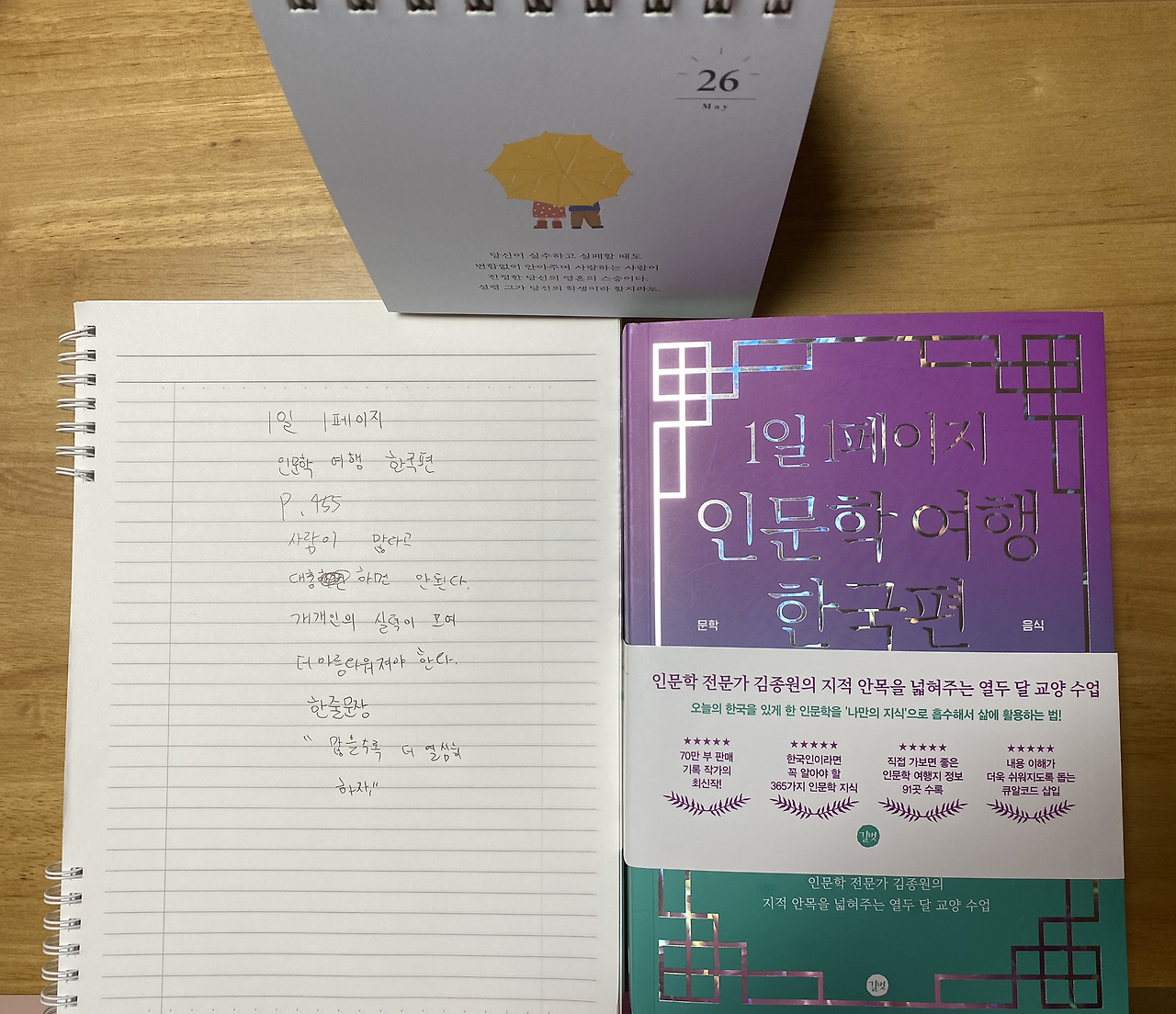 3. 1일 1페이지 인문학 여행 한국 편 455p를 읽고