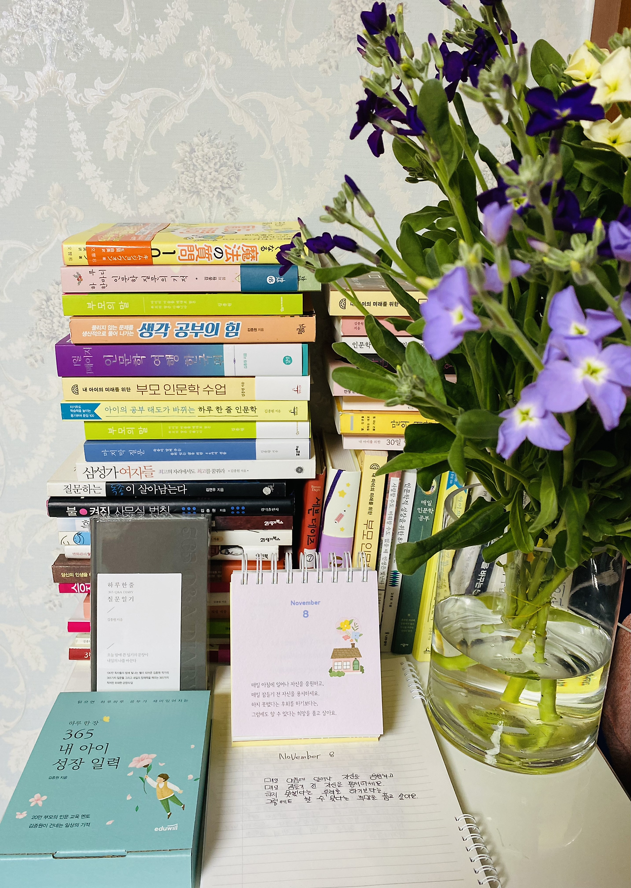 둘째가 쓴 ‘하루 한 줄 인문학 Q&A 다이어리’의 질문을 읽고 공부하는 사람의 마음과 의미를 묻는 질문에 지난해 쓴 기록은 ‘내가 해야 할 일이니까 꿈을 향해 가는 것’이라고 말했고 올해에는 ‘꿈을 위해 성장한다’라고 글을 썼다. 항상 나보다 나은 생각의 문을 열고 확장해가는 15살 소년의 생각을 바라보는 일이 무엇보다 멋진 책을 읽는 듯 매일 읽고 싶어지는 생각이 향하는 글이 참 반갑다.