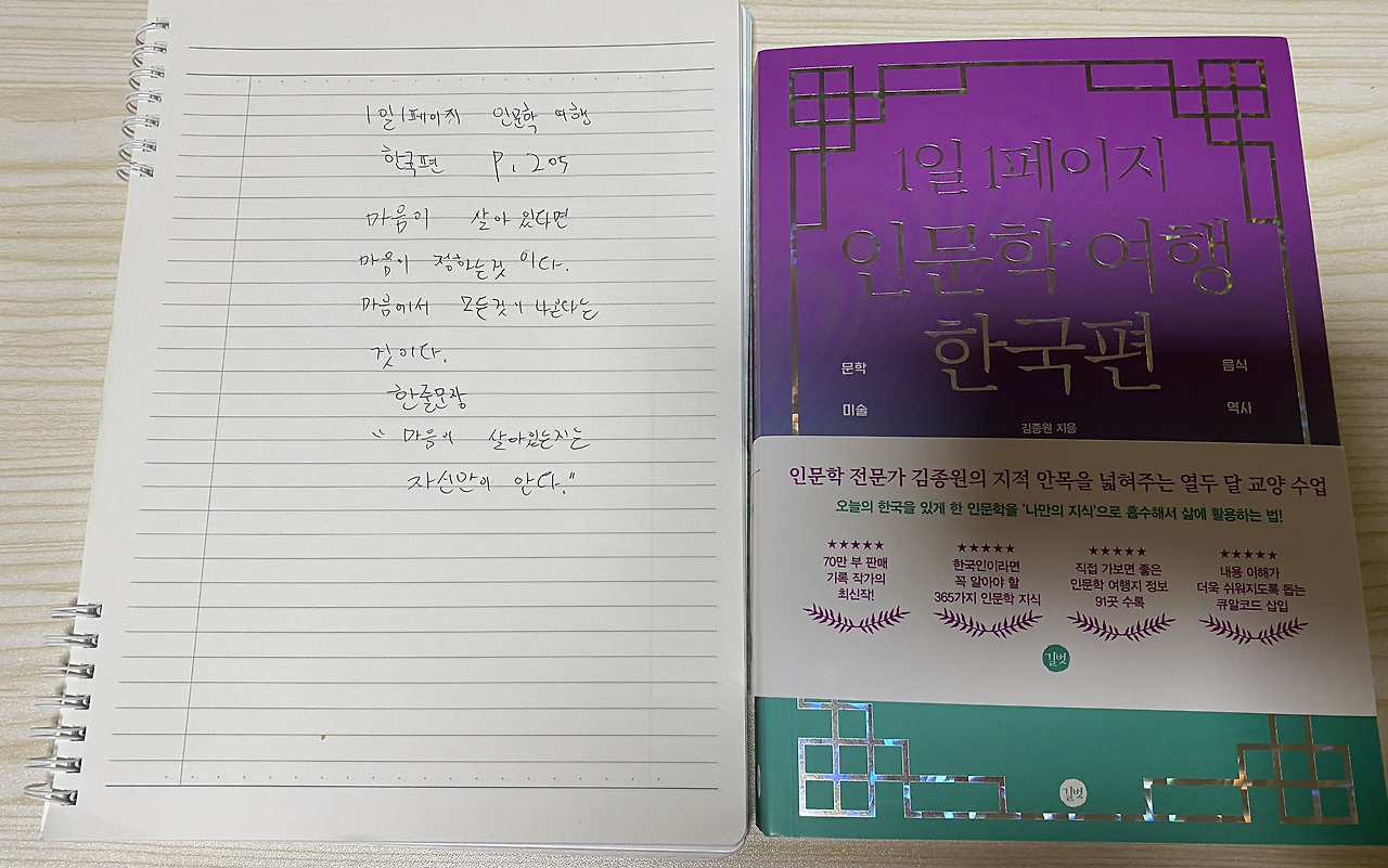 2. 1일 1페이지 인문학 여행 한국 편 205p를 읽고