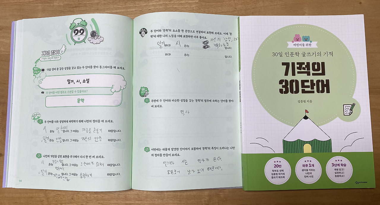 아이는 기적의 30 단어를 읽고 문학의 요소에 일기와 시로 다가갔다. 자신의 감정과 과거를 기록하며 이 두 가지에서 역사를 발견한다. 결국 일기와 시에는 모든 것이 남아있는 역사라는 단어를 쓰며 하나를 정의한다. 하루 밤 사이 글과 단어와 질문에서 자신의 문장 하나를 발견하는 것처럼 위대한 과정을 경험하게 하는 지성의 창조가 아니면 무엇으로 이 근사한 공부를 설명할 수 있을까