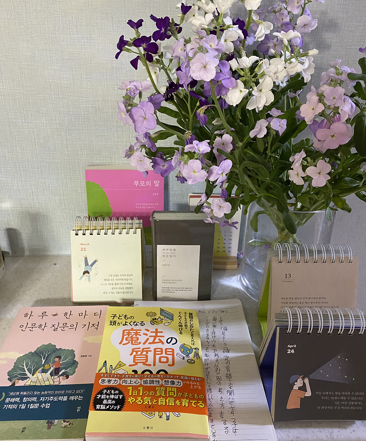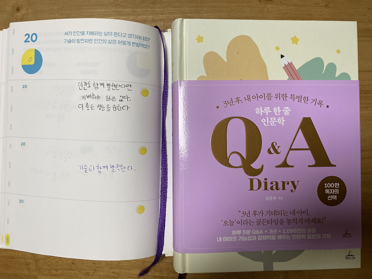 ‘하루 한 줄 인문학 질문 다이어리’ ’에서 질문하는 Al와 인간 삶의 변화에 대한 1년 전 아이가 쓴 일기가 인상적이다. 인간도 함께 발전한다면 AI가 인간을 지배하는 일은 없다고 말했고 올해 쓴 아이의 생각 역시도 기술과 인간이 고르게 발전한다는 생각으로 다가 간 아이의 정의에 함께 매일 해마다 자신의 크기로 성장한다는 것이 무엇인지 질문해 본다. ‘하루 10분 따라 쓰기’ 워크북 질문지를 따라 글쓰기와 사람 소통과 마음의 길을 걸었고 이 역시도 경험에서 발견하는 어떤 도움이라는 것의 의미를 발견했다는 것을 보며 인문학 그리고 지성의 손길이 있어 이처럼 다양하게 변주하며 아이는 밤길을 혼자서 글과 함께 예쁘게 걸었구나.