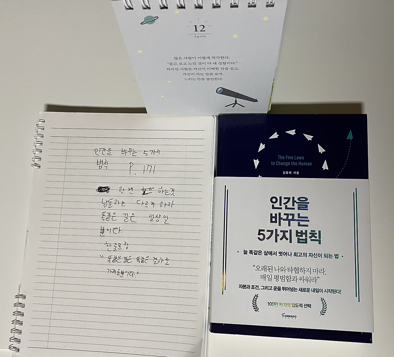 2. 인간을 바꾸는 5가지 법칙 171p를 읽고 중2 필사