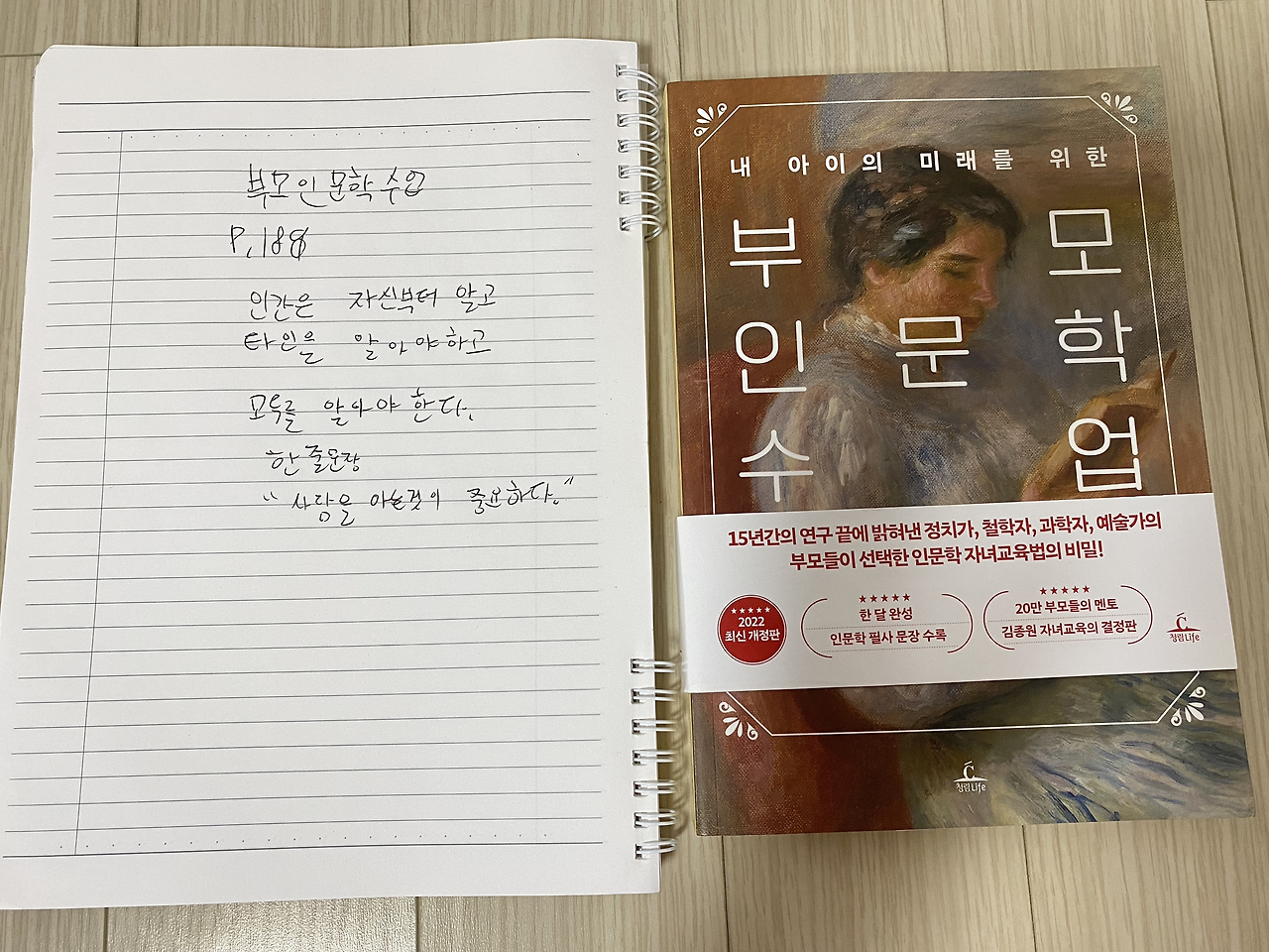 2. 부모 인문학 수업 189p를 읽고 중2 필사
