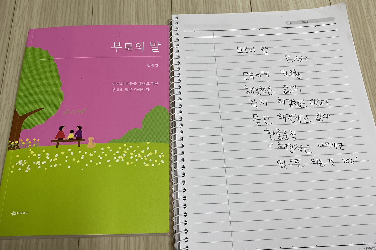 2. 부모의 말 233p를 읽고 예비 중3 필사