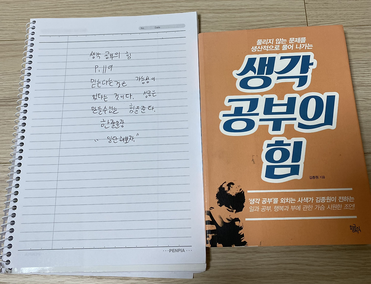 2. 생각 공부의 힘 119p를 읽고 예비 중3 필사