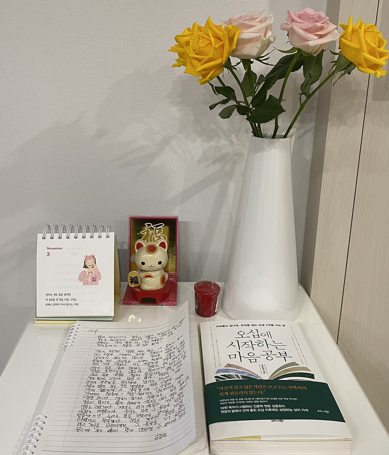 둘째 올해 중3의 생각을 필사 글로 읽다 보면 곧 지성과 걷는 인문학 통로인 하나의 길에서 반갑게 만나는 순간이 참 좋다. 자신의 생각을 따라가다가 꺼내는 한 줄 문장에서 그 힘이 느껴지기 때문이다. 오늘 아니 평일에 맞는 이 집에서의 아침 속 풍경이 잔잔하게 흐르는 호수 같다는 느낌이 들었다. 아침잠에서 깨어 내 침대로 와 새롭게 시작할 3학년 반 이야기를 하다가 살짝 눕는데 이런 기회를 꼭 잡고 싶어 나는 아이의 머리칼을 손으로 곱게 쓰다 듬는다. 아이가 어릴 때는 자주 했지만 성장기 아이를 내 마음껏 안을 수도 닿기도 조심스러워지는 게 서로를 존중하는 마음으로 바라보게 하니까.